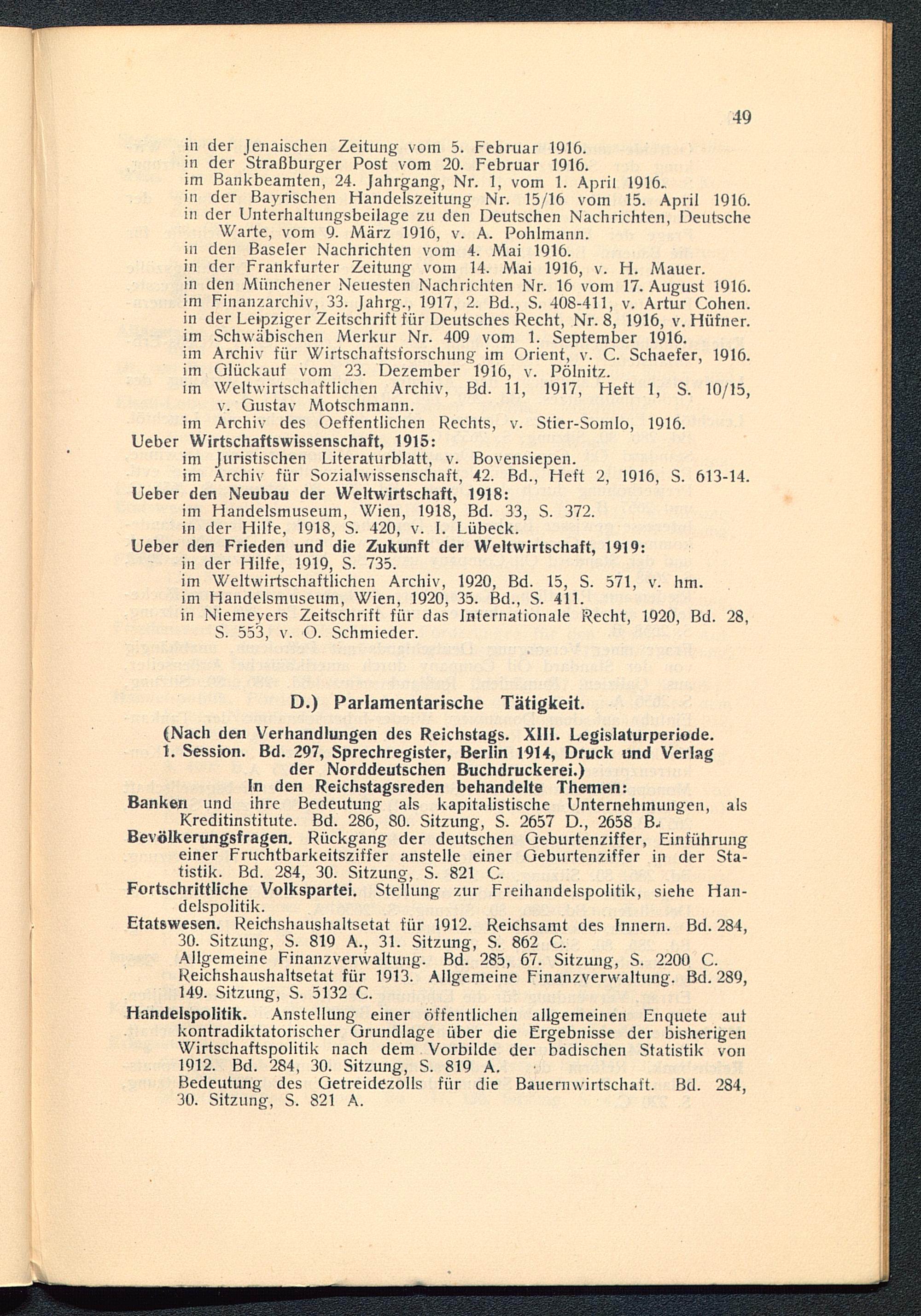 D.) Parlamentarische Tätigkeit.