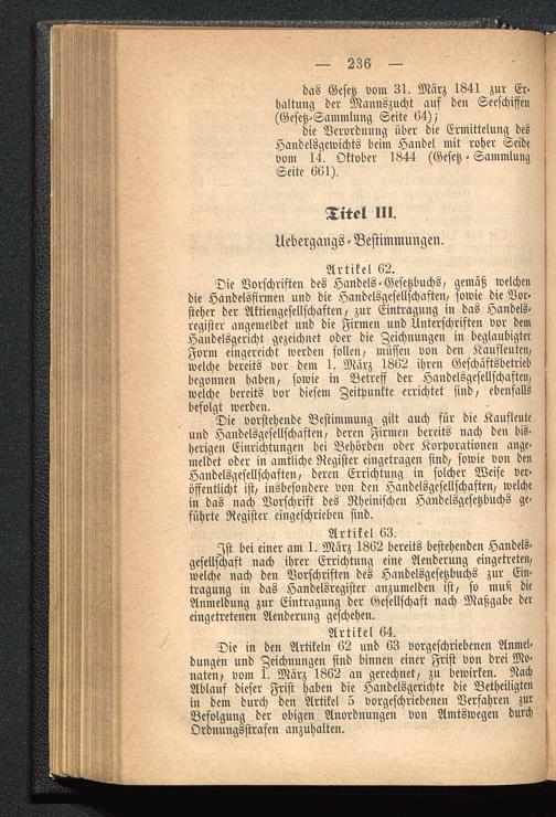 Verhandlungen ueber die Entwuerfe eines allgemeinen deutschen Handelsgesetzbuches und eines Einfuehrungs-Gesetzes zu demselben in beiden Haeusern des Landtages im Jahre 1861 : vollst. Abdr. d. stenograph. Berichte nebst Entwuerfen, Motive u. Komm.-Berichten zu denselben