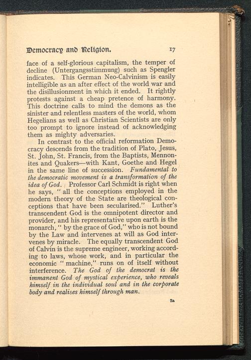 Democracy and religion : a study in Quakerism / by G. von Schulze-Gaevernitz