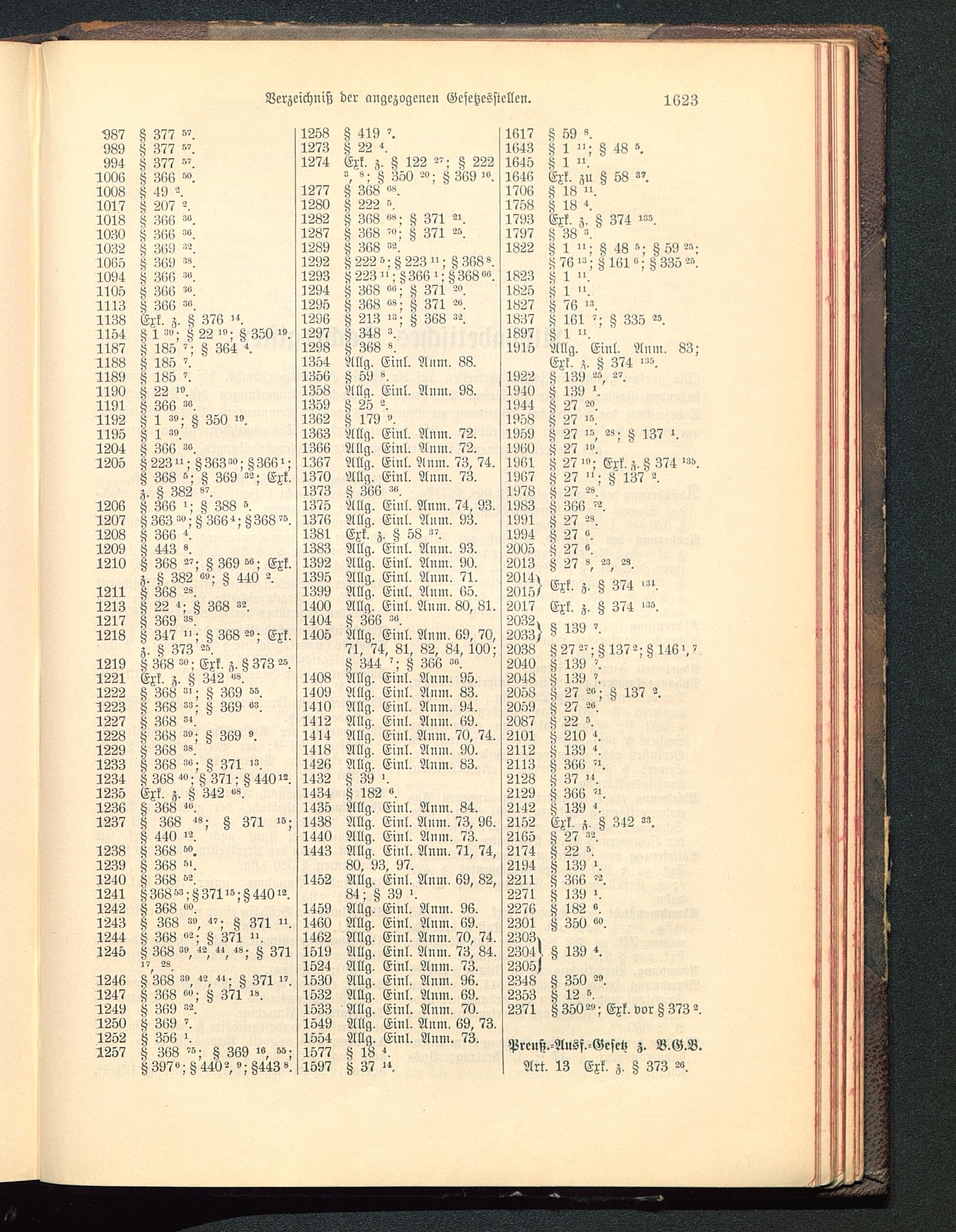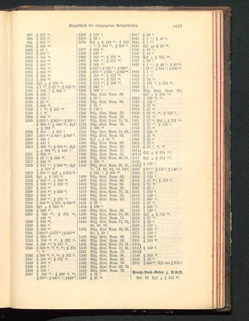 Verzeichniß der angezogenen Gesetzesstellen.