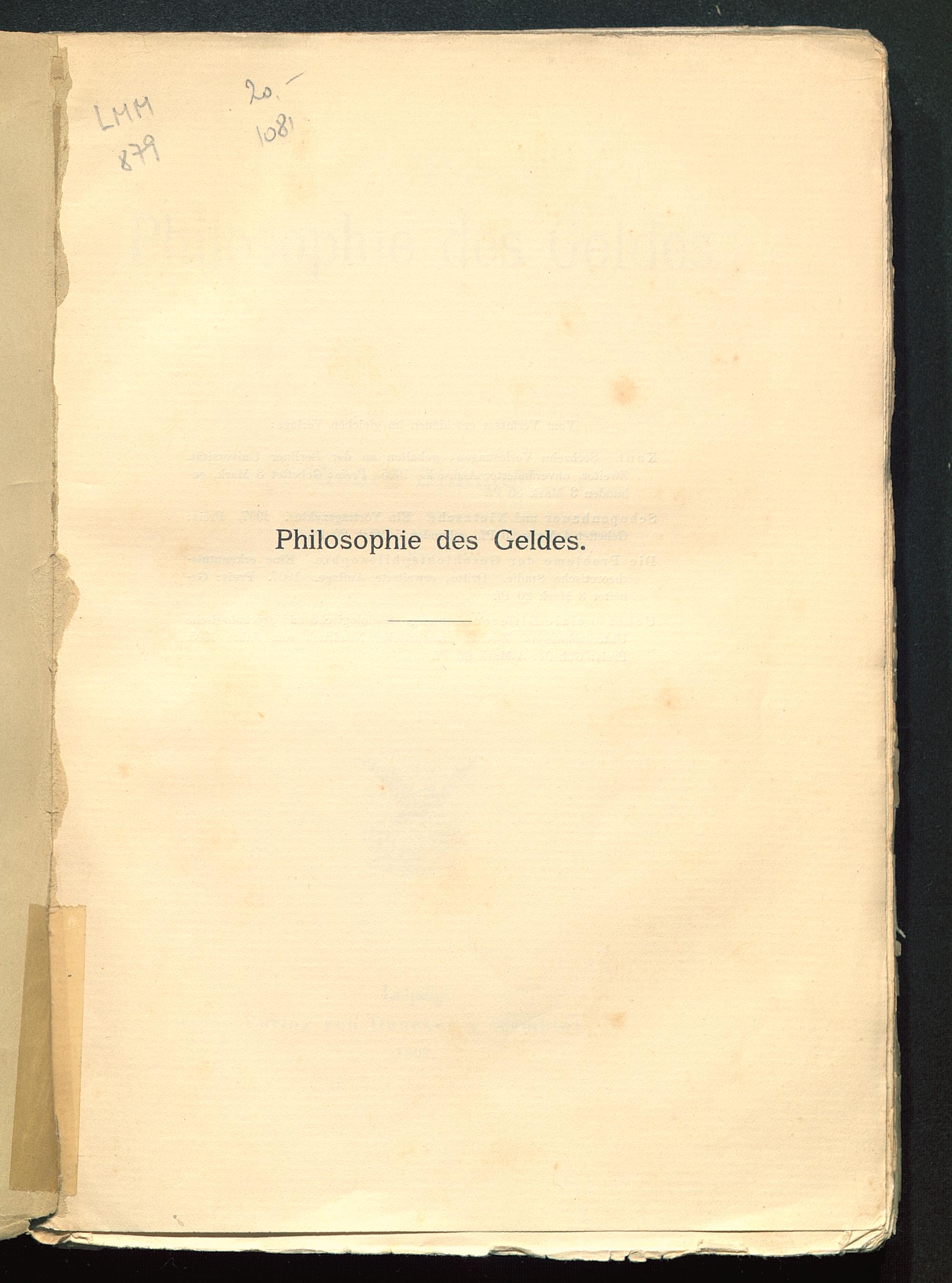 Philosophie des Geldes / von Georg Simmel