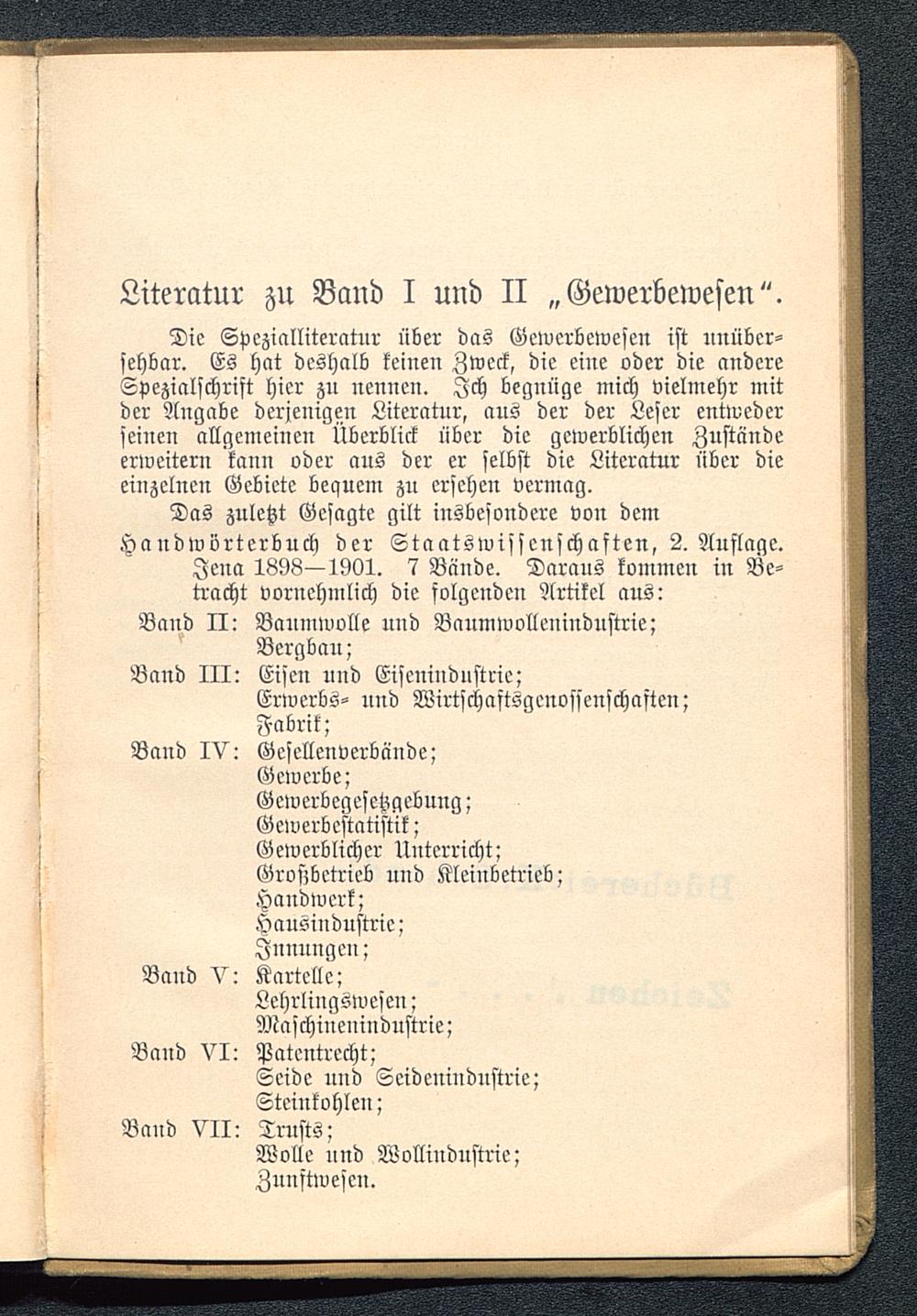 Literatur zu Band I und II "Gewerbewesen".