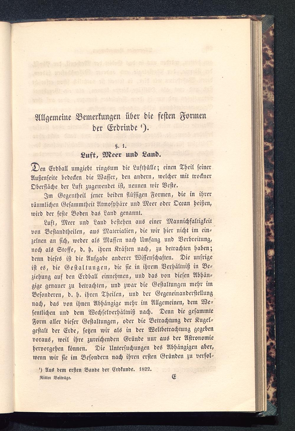 Einleitung zur allgemeinen vergleichenden Geographie, und Abhandlungen zur Begründung einer mehr wissenschaftlichen Behandlung der Erdkunde / von Carl Ritter