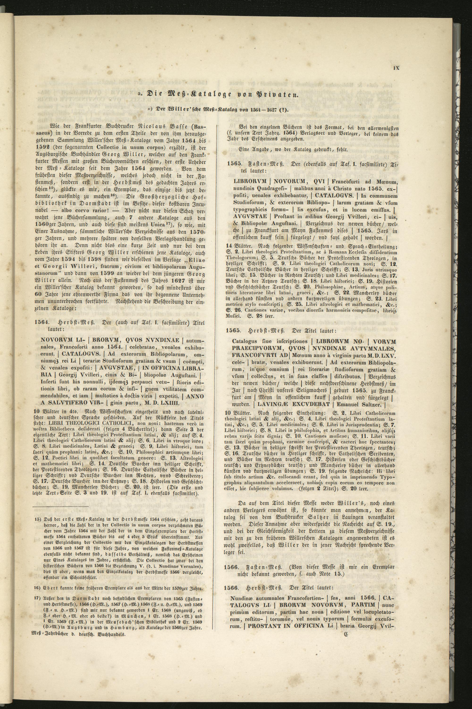 [Hauptw.] (1850) Von dem Erscheinen des ersten Meß-Kataloges im Jahre 1564 bis zu der Gründung des ersten Buchhändler-Vereins im Jahre 1765