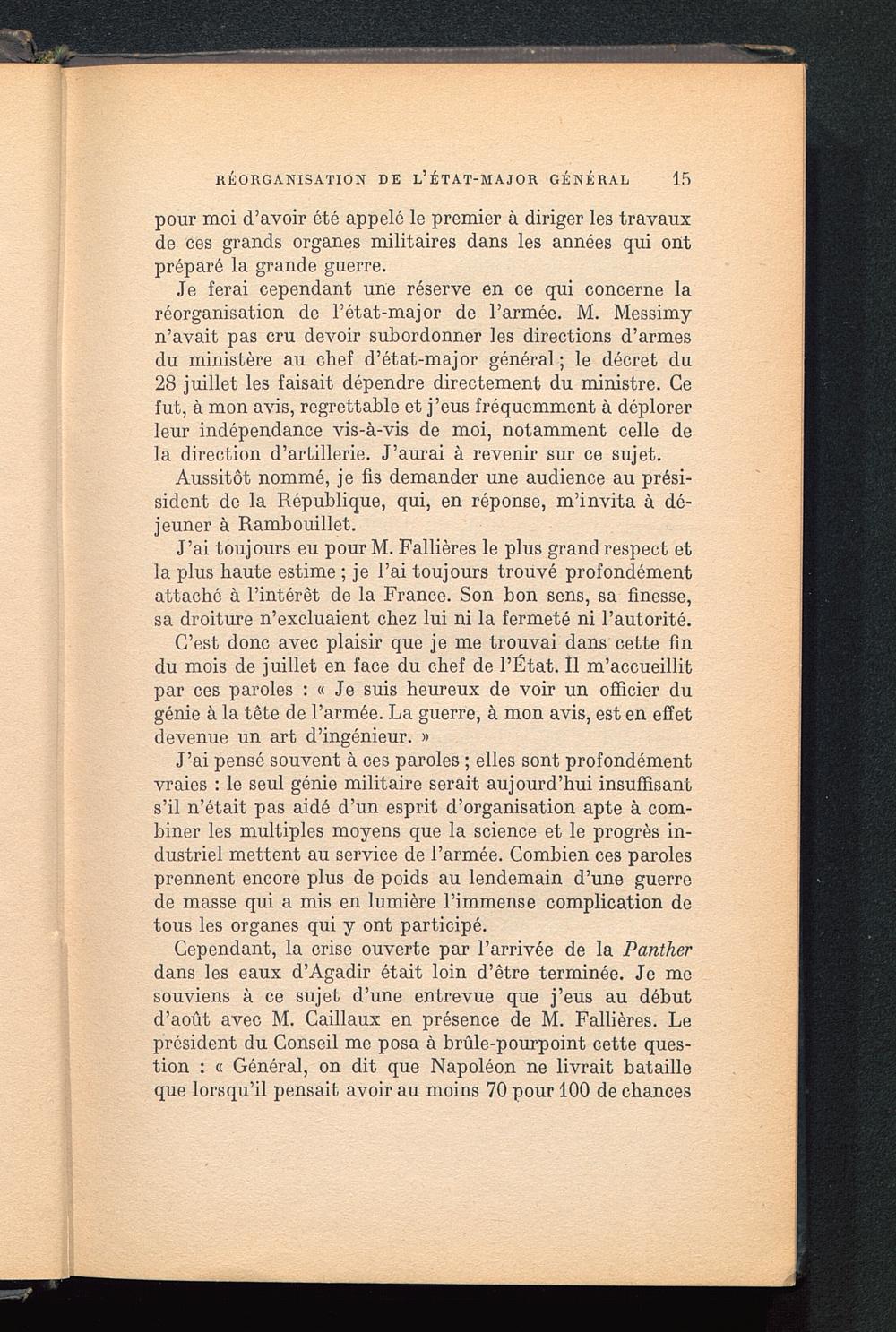 Chapitre Premier. J’entre au Conseil supérieur de la guerre (février 1910)