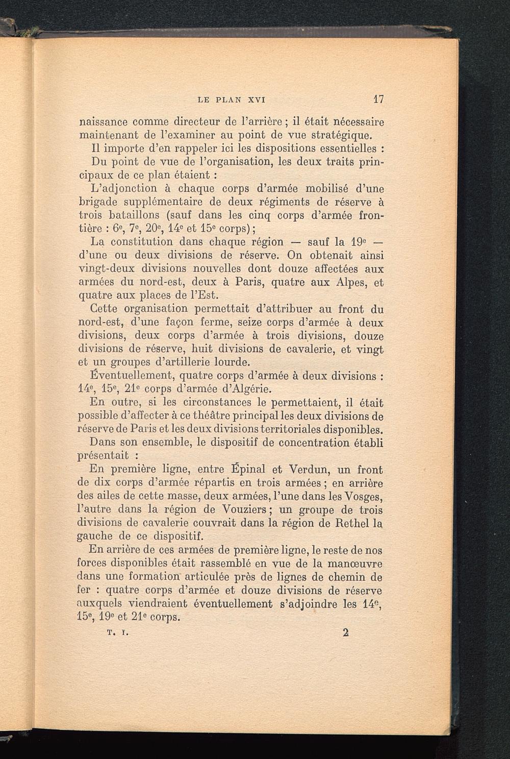 Chapitre X. Le plan XVII. — La mise sur pied du plan