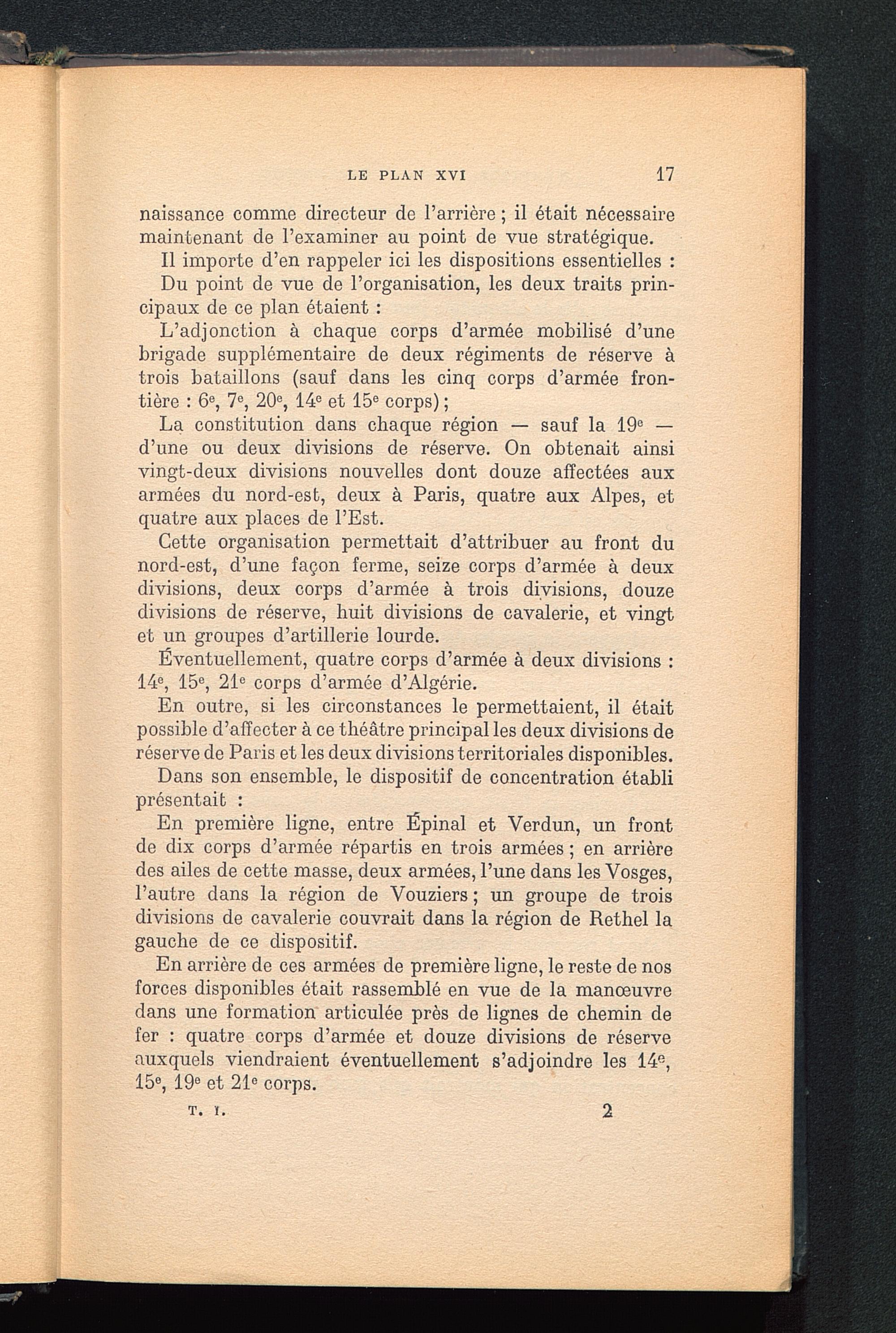 Chapitre IX. Le plan XVII. — Idées qui ont servi de base au plan de concentration