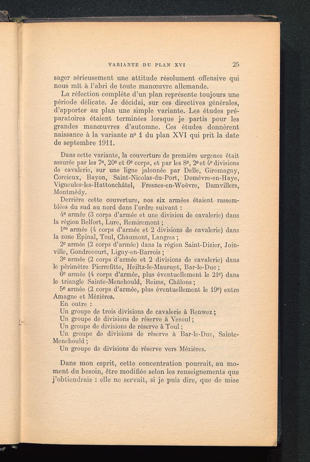 Chapitre IX. Le plan XVII. — Idées qui ont servi de base au plan de concentration
