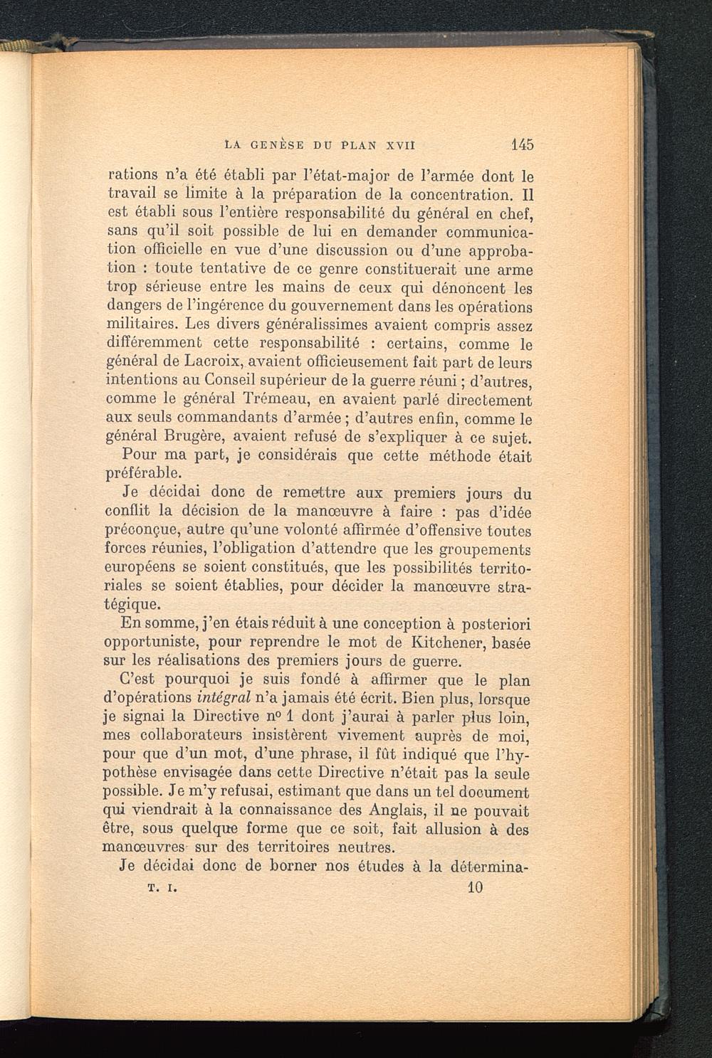 Chapitre X. Le plan XVII. — La mise sur pied du plan