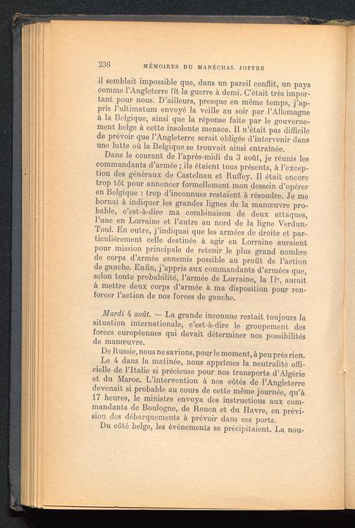 Chapitre II. La mobilisation. — La concentration. — La Belgique et l’Angleterre entrent dans la guerre à nos côtés. — Les premières rencontres en Alsace. — 2 août-16 août 1914