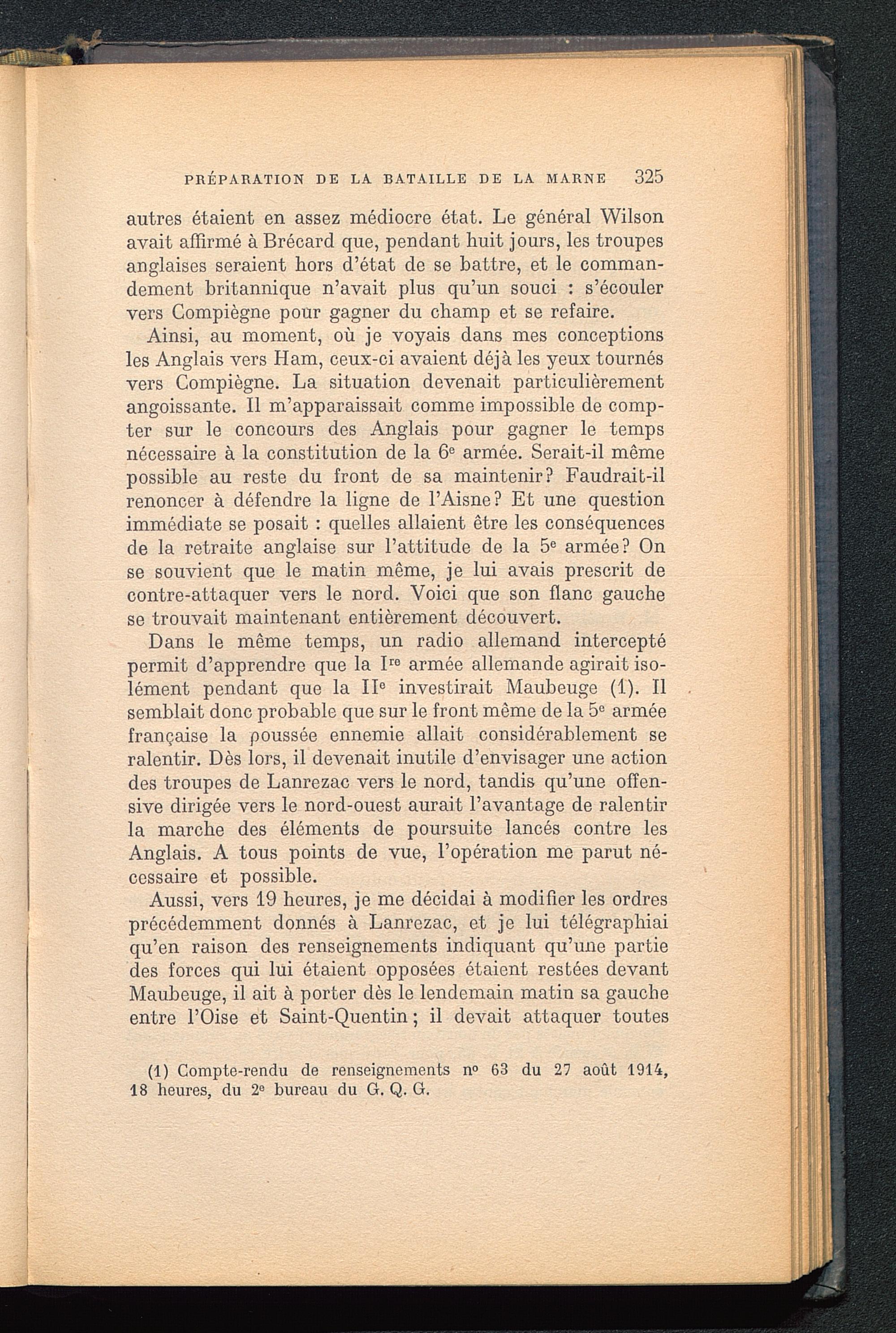 Chapitre IV. La préparation de la bataille de la Marne. — 25 août-5 septembre 1914