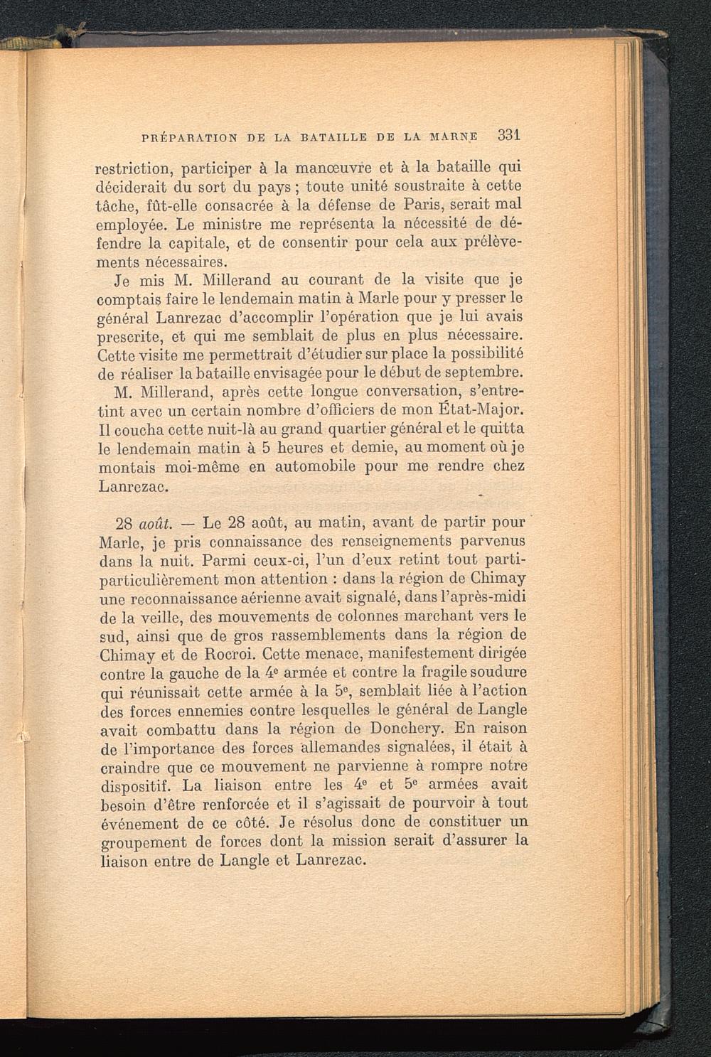Chapitre IV. La préparation de la bataille de la Marne. — 25 août-5 septembre 1914