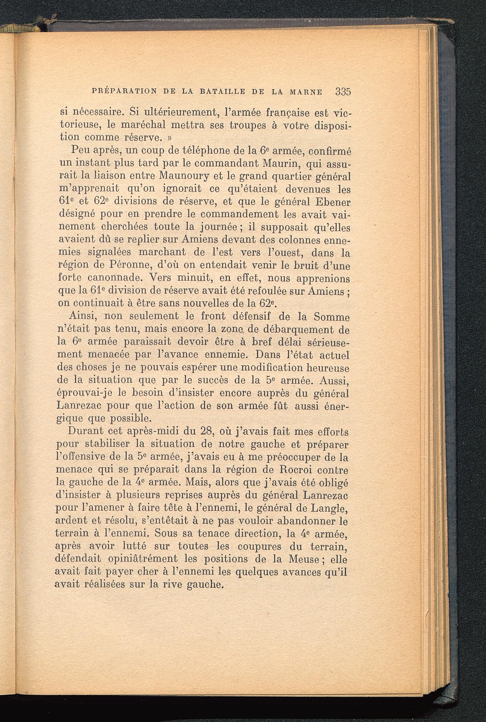 Chapitre IV. La préparation de la bataille de la Marne. — 25 août-5 septembre 1914
