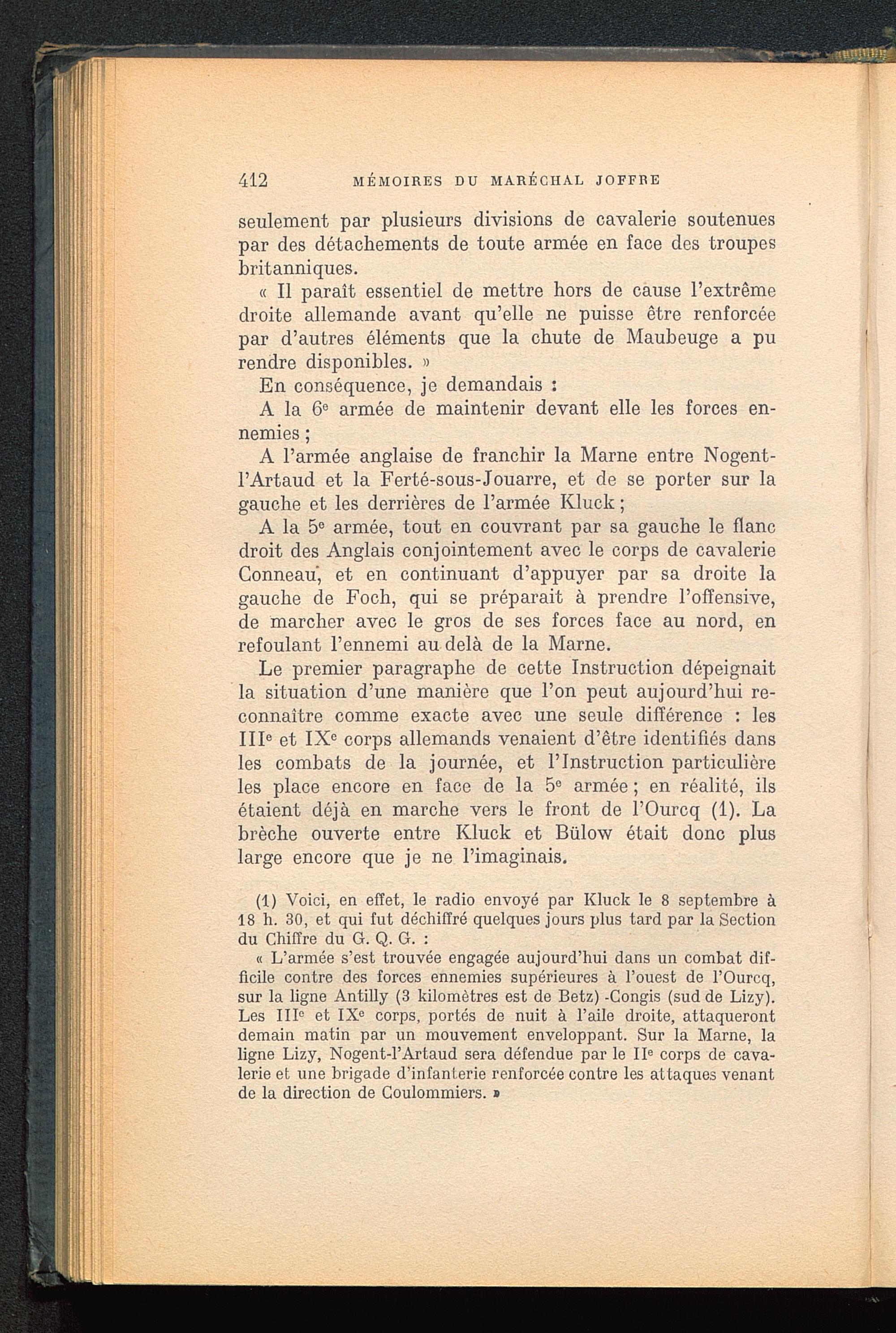 Chapitre IV. La préparation de la bataille de la Marne. — 25 août-5 septembre 1914