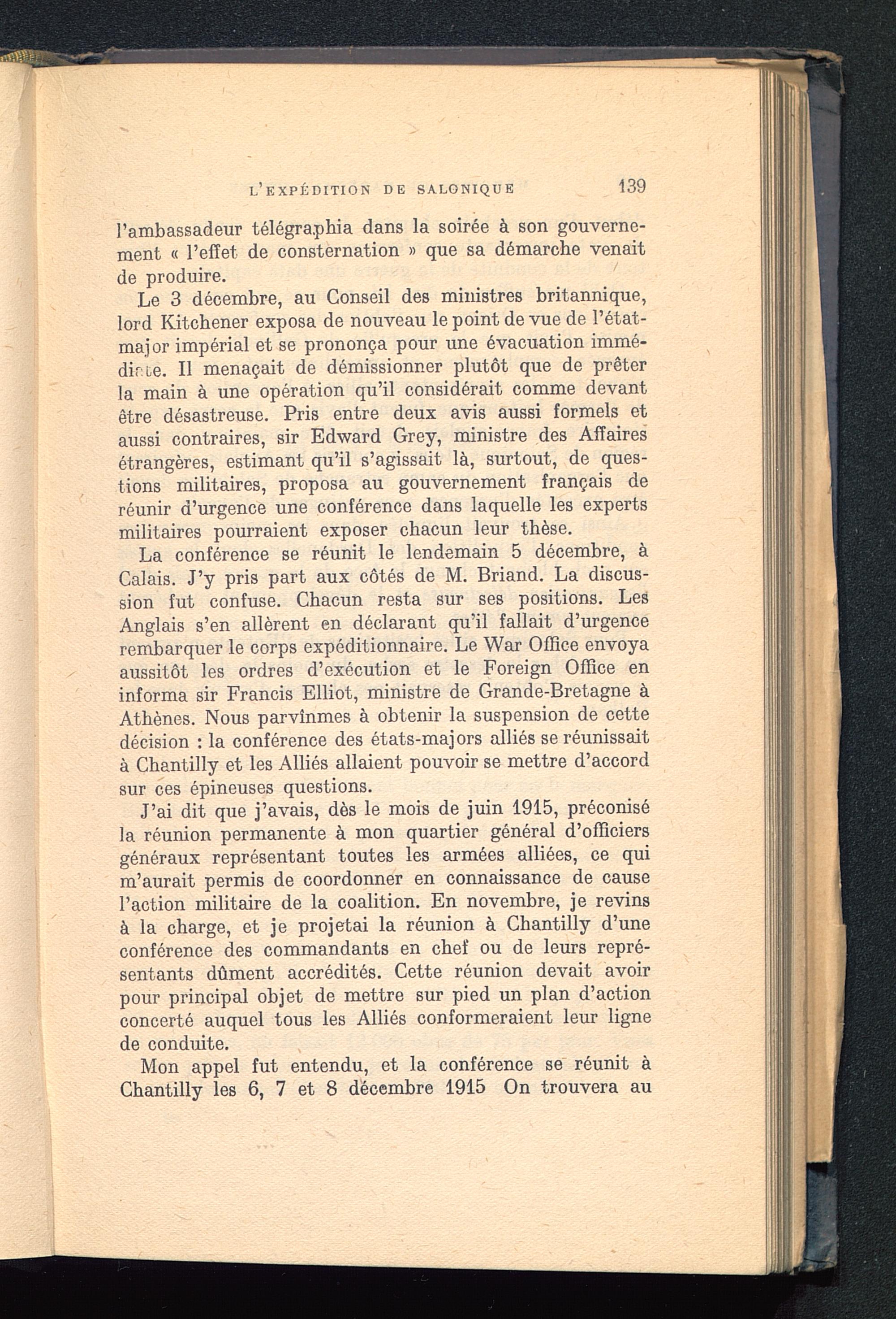 Chaptire Premier. La Conférence de Chantilly (6-7-8 décembre 1915) — Le bilan de l’année 1915. — Le plan d’action de la coalition pour 1916. — Le général sir Douglas Haig remplace le maréchal French. — L'Entente avec les Russes. — L'armée italienne. — L'action de la coalition en Orient. — Le sauvetage de l'armée serbe. — La Roumanie. — La guerre économique