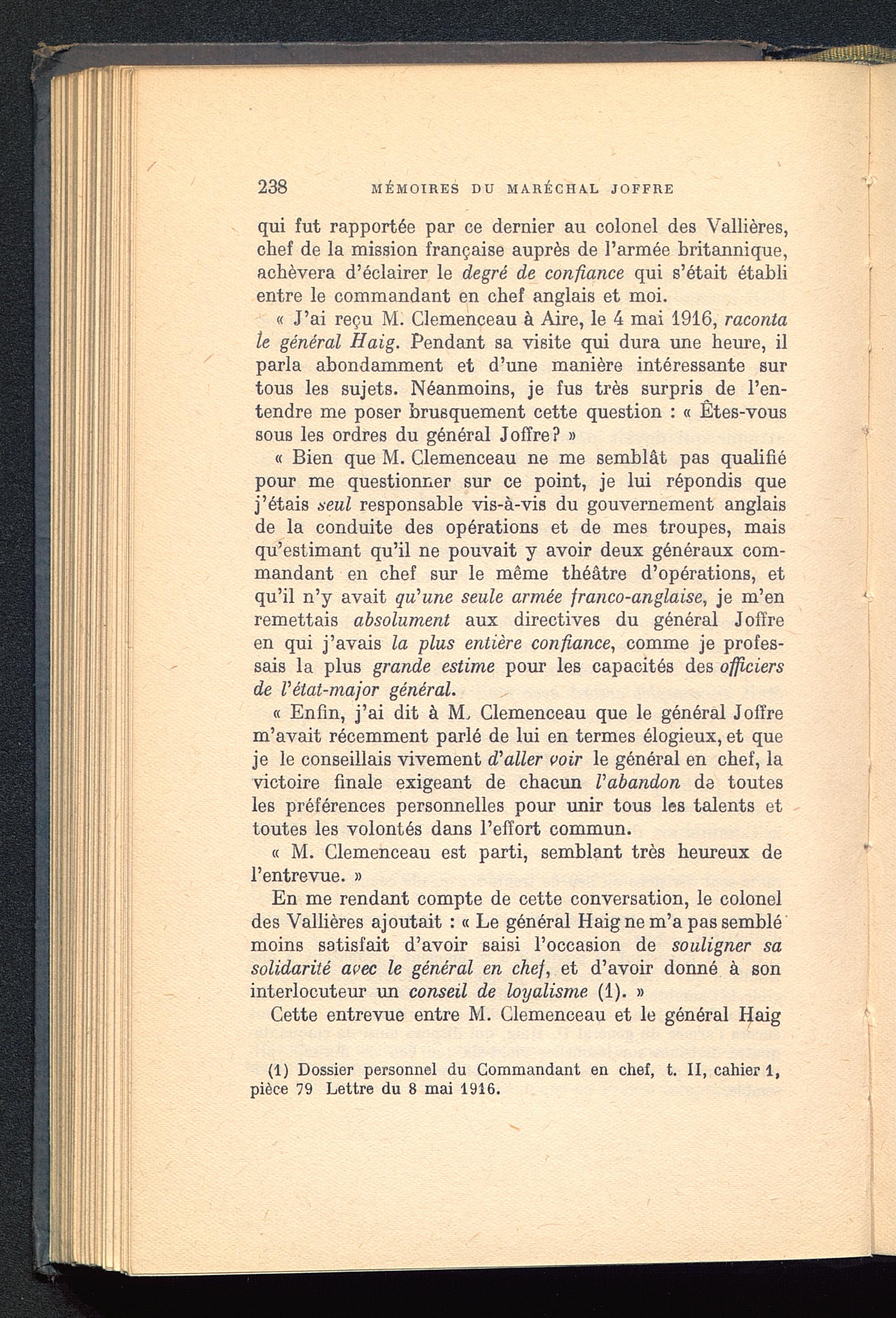 Chaptire Premier. La Conférence de Chantilly (6-7-8 décembre 1915) — Le bilan de l’année 1915. — Le plan d’action de la coalition pour 1916. — Le général sir Douglas Haig remplace le maréchal French. — L'Entente avec les Russes. — L'armée italienne. — L'action de la coalition en Orient. — Le sauvetage de l'armée serbe. — La Roumanie. — La guerre économique