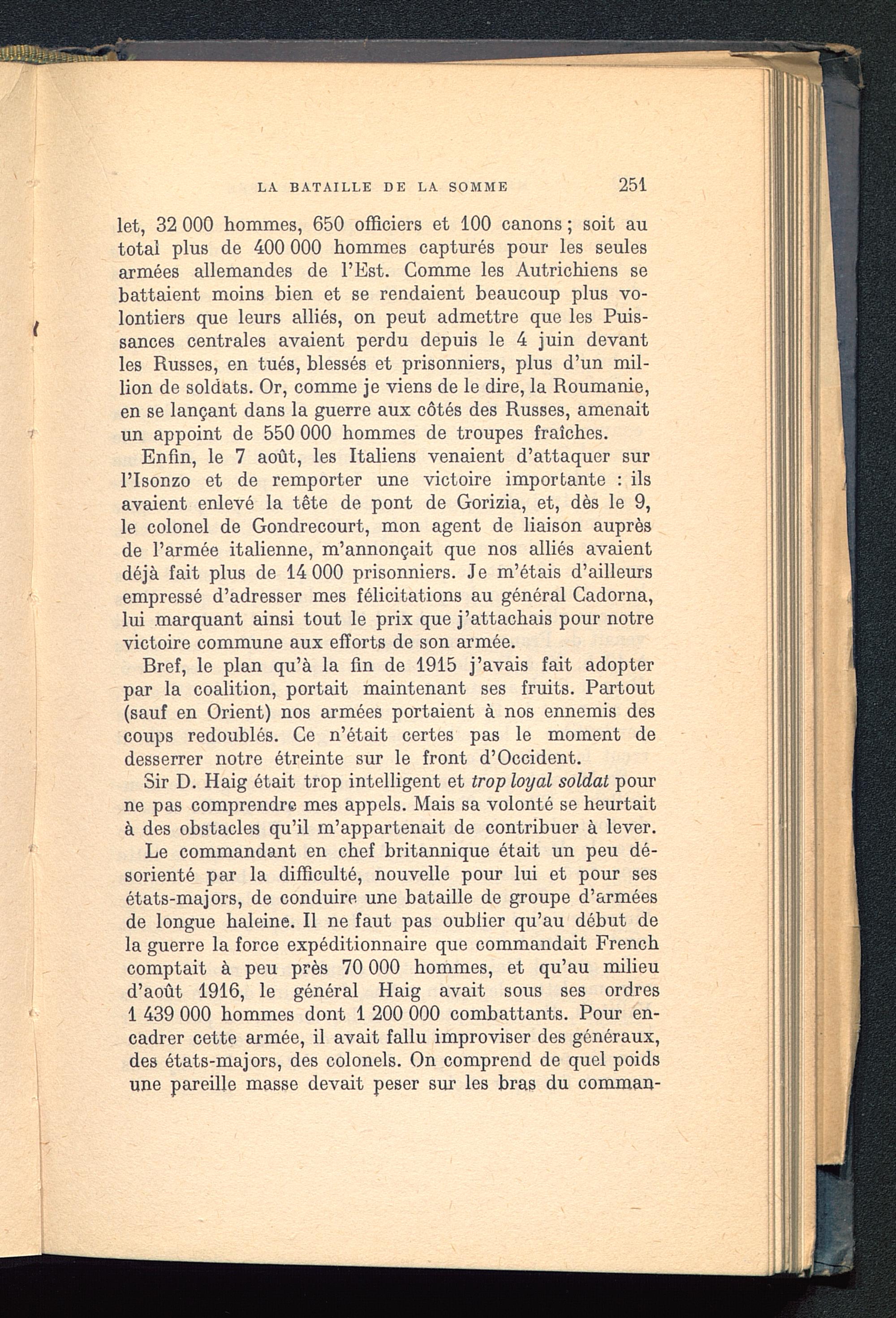 Chaptire Premier. La Conférence de Chantilly (6-7-8 décembre 1915) — Le bilan de l’année 1915. — Le plan d’action de la coalition pour 1916. — Le général sir Douglas Haig remplace le maréchal French. — L'Entente avec les Russes. — L'armée italienne. — L'action de la coalition en Orient. — Le sauvetage de l'armée serbe. — La Roumanie. — La guerre économique