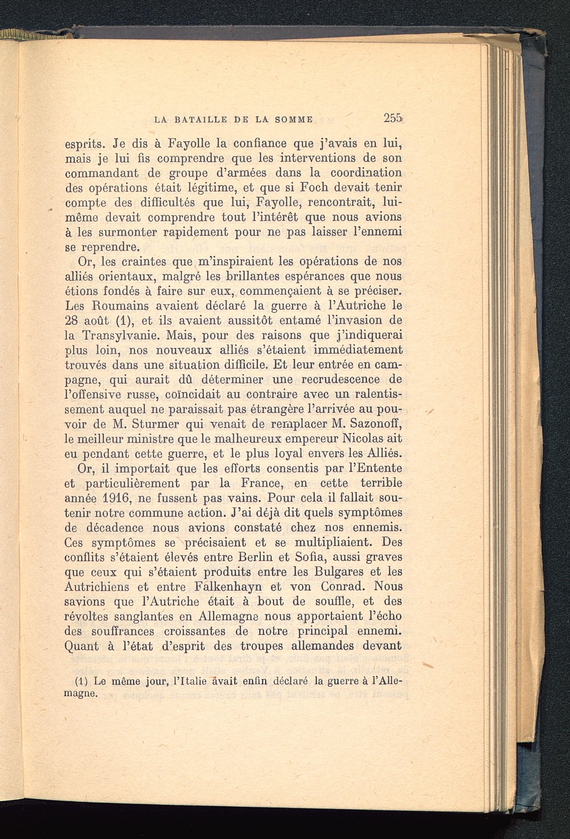 Chaptire Premier. La Conférence de Chantilly (6-7-8 décembre 1915) — Le bilan de l’année 1915. — Le plan d’action de la coalition pour 1916. — Le général sir Douglas Haig remplace le maréchal French. — L'Entente avec les Russes. — L'armée italienne. — L'action de la coalition en Orient. — Le sauvetage de l'armée serbe. — La Roumanie. — La guerre économique
