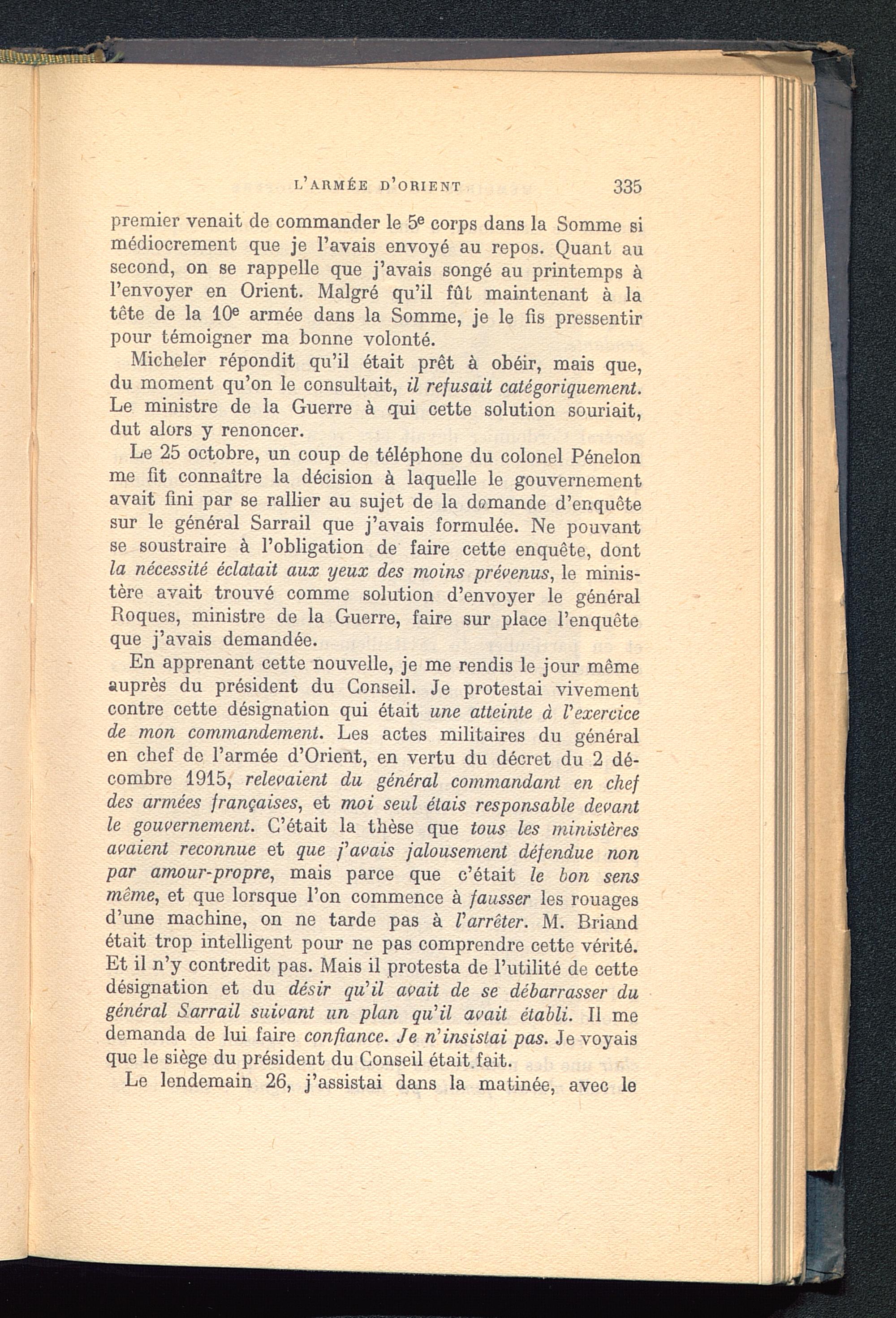 Chaptire Premier. La Conférence de Chantilly (6-7-8 décembre 1915) — Le bilan de l’année 1915. — Le plan d’action de la coalition pour 1916. — Le général sir Douglas Haig remplace le maréchal French. — L'Entente avec les Russes. — L'armée italienne. — L'action de la coalition en Orient. — Le sauvetage de l'armée serbe. — La Roumanie. — La guerre économique
