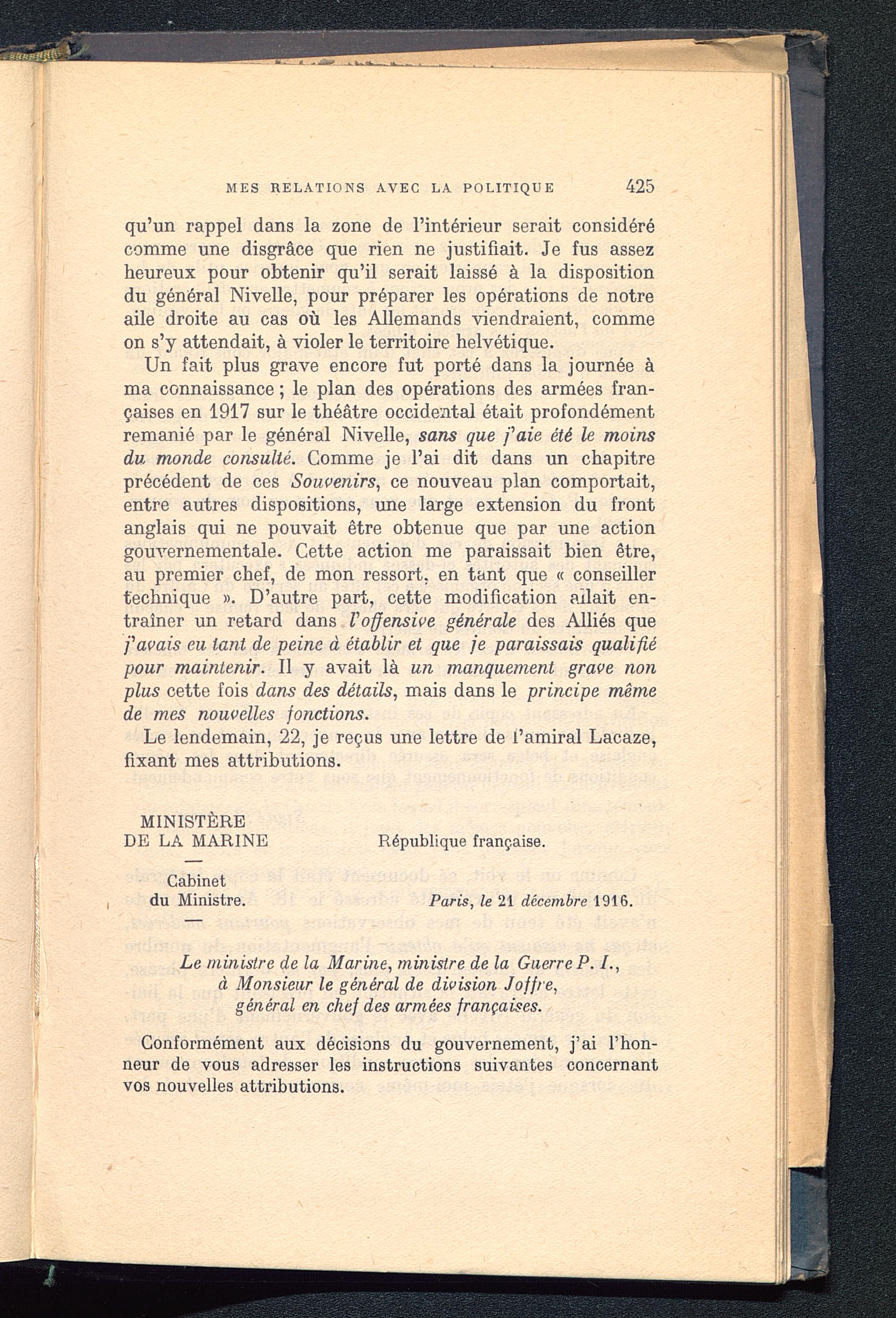 Chapitre VI. Mes relations avec la politique en 1916. — Mon départ