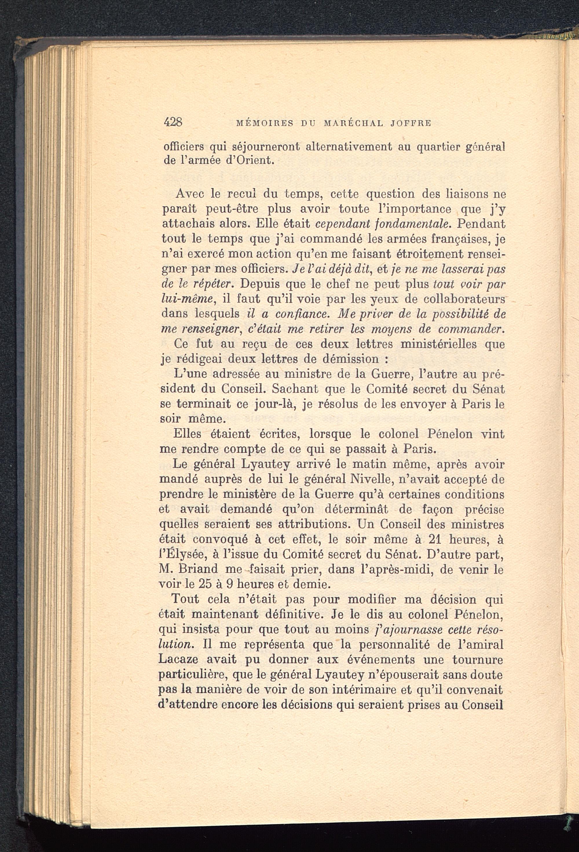Chapitre VI. Mes relations avec la politique en 1916. — Mon départ