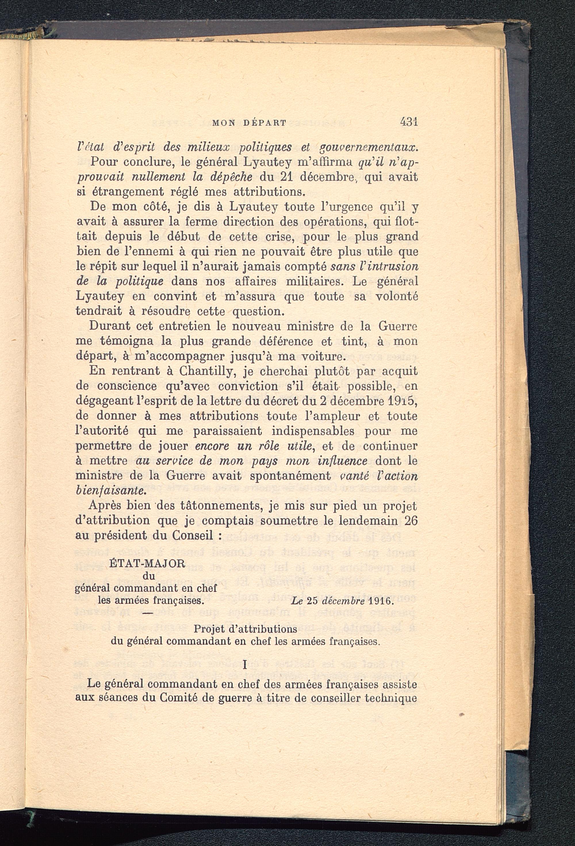 Chapitre VI. Mes relations avec la politique en 1916. — Mon départ