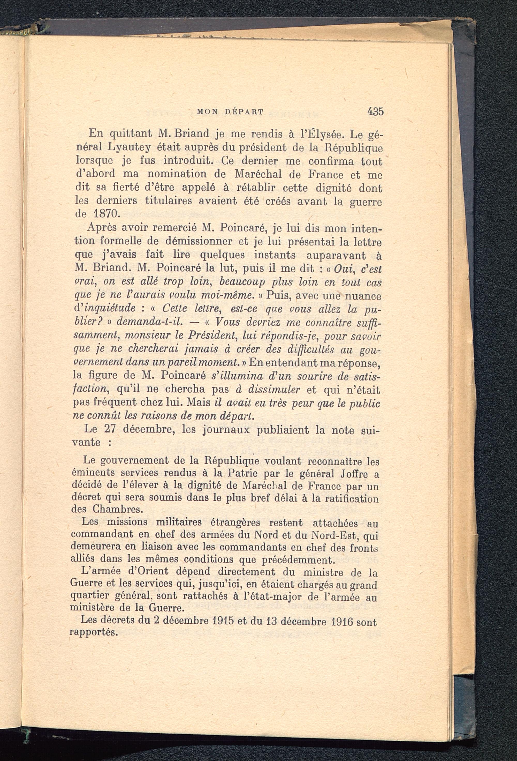 Chapitre VI. Mes relations avec la politique en 1916. — Mon départ