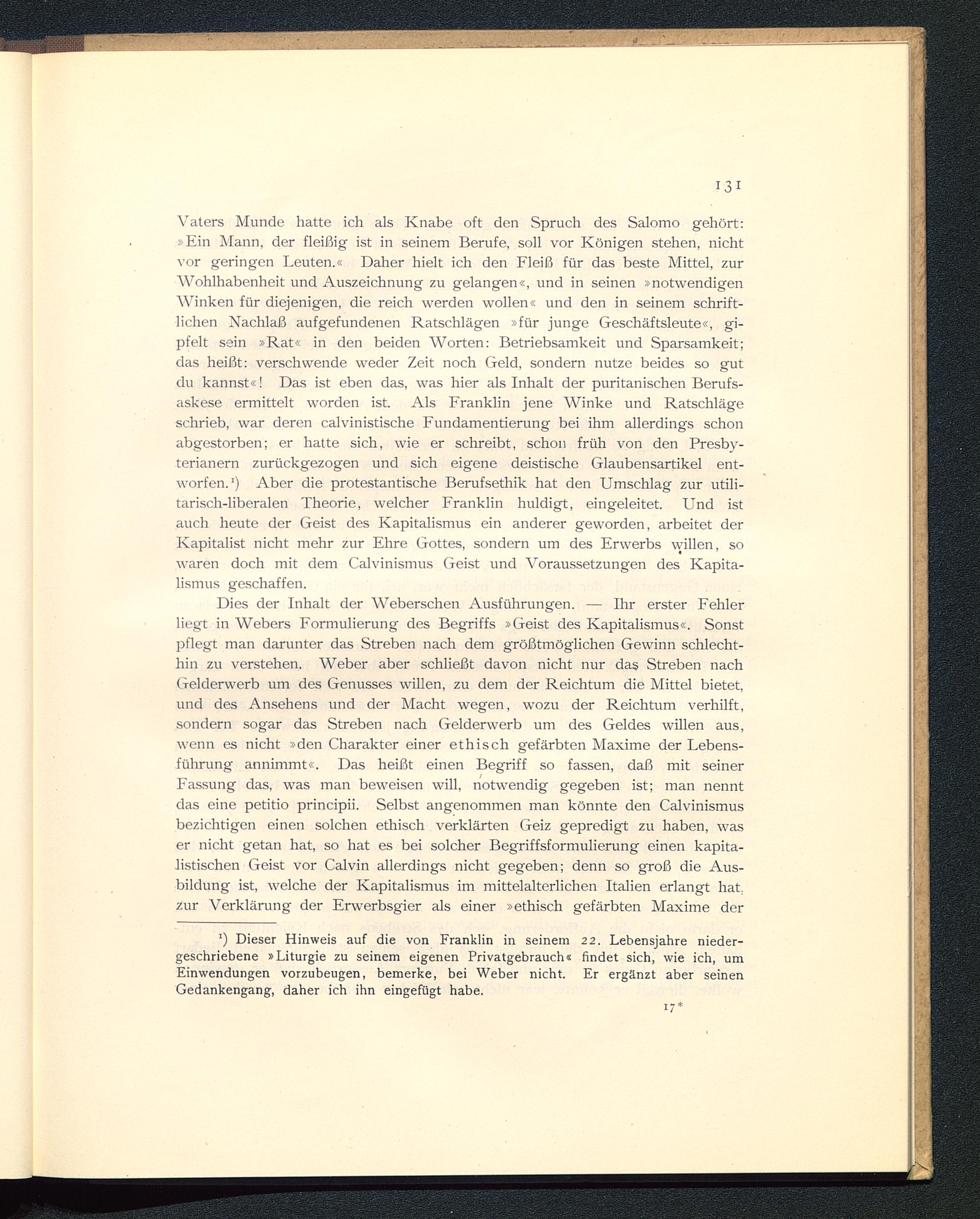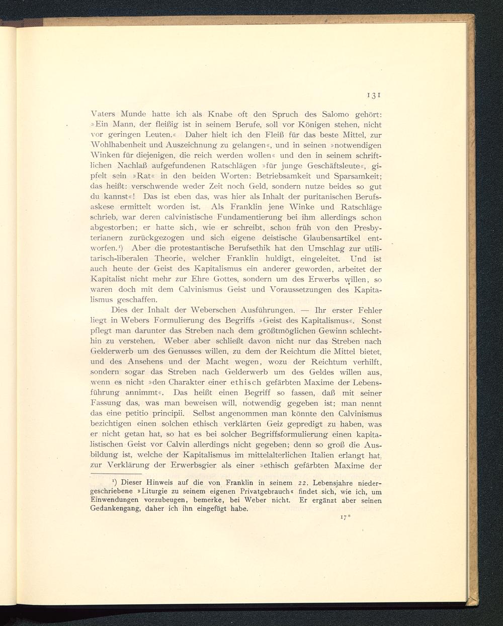 II. Puritanismus und Kapitalismus.