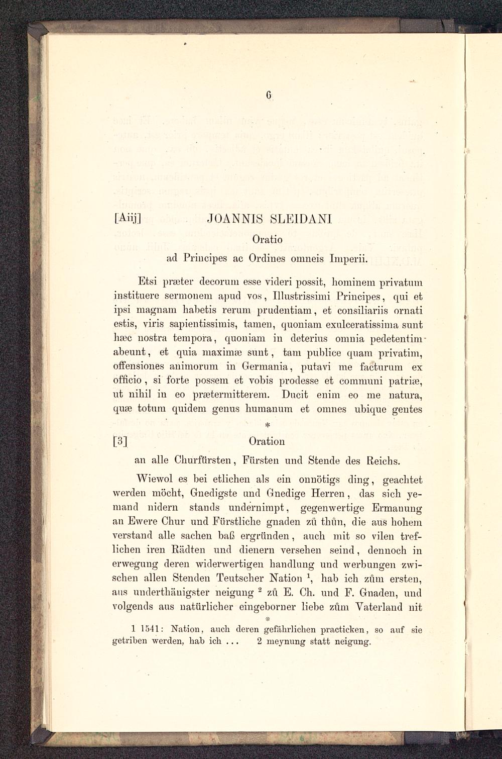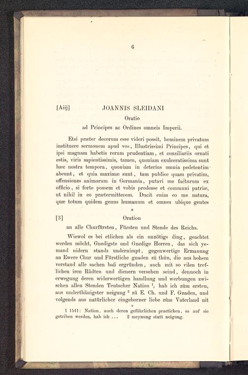 JOANNIS SLEIDANI. Oratio ad Principes ac Ordines omneis Imperii. Oration an alle Churfürsten, Fürsten und Stende des Reichs