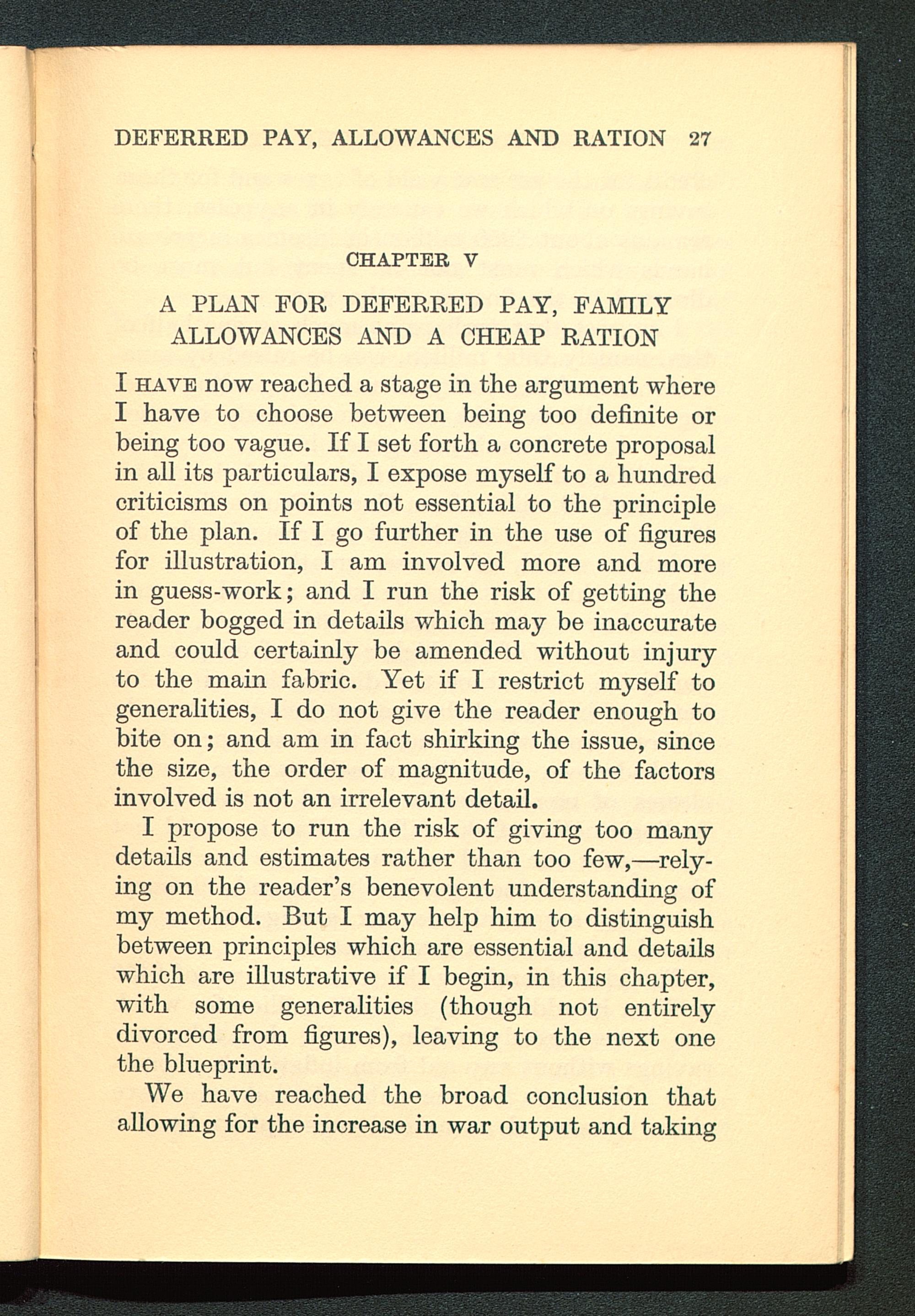 Chapter V. A Plan for Deferred Pay, Family Allowances and a Cheap Ration