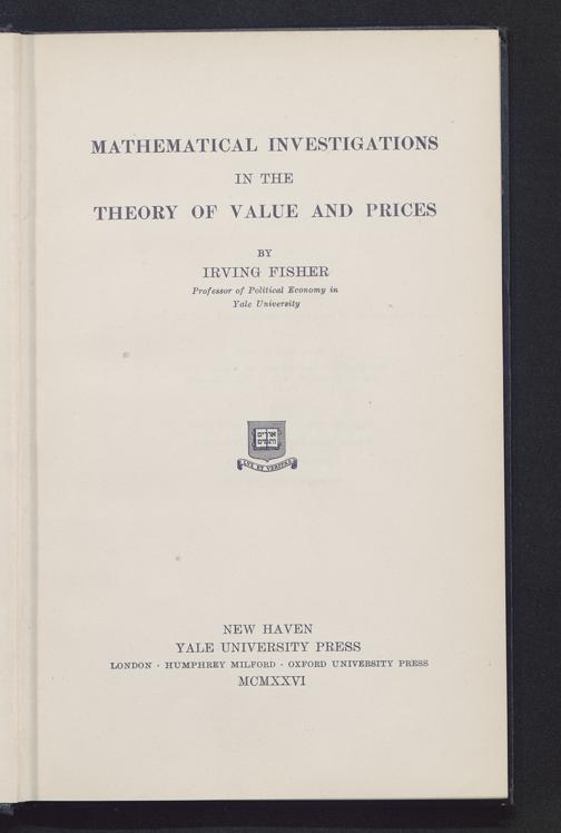 Mathematical investigations in the theory of value and prices / by Irving Fisher
