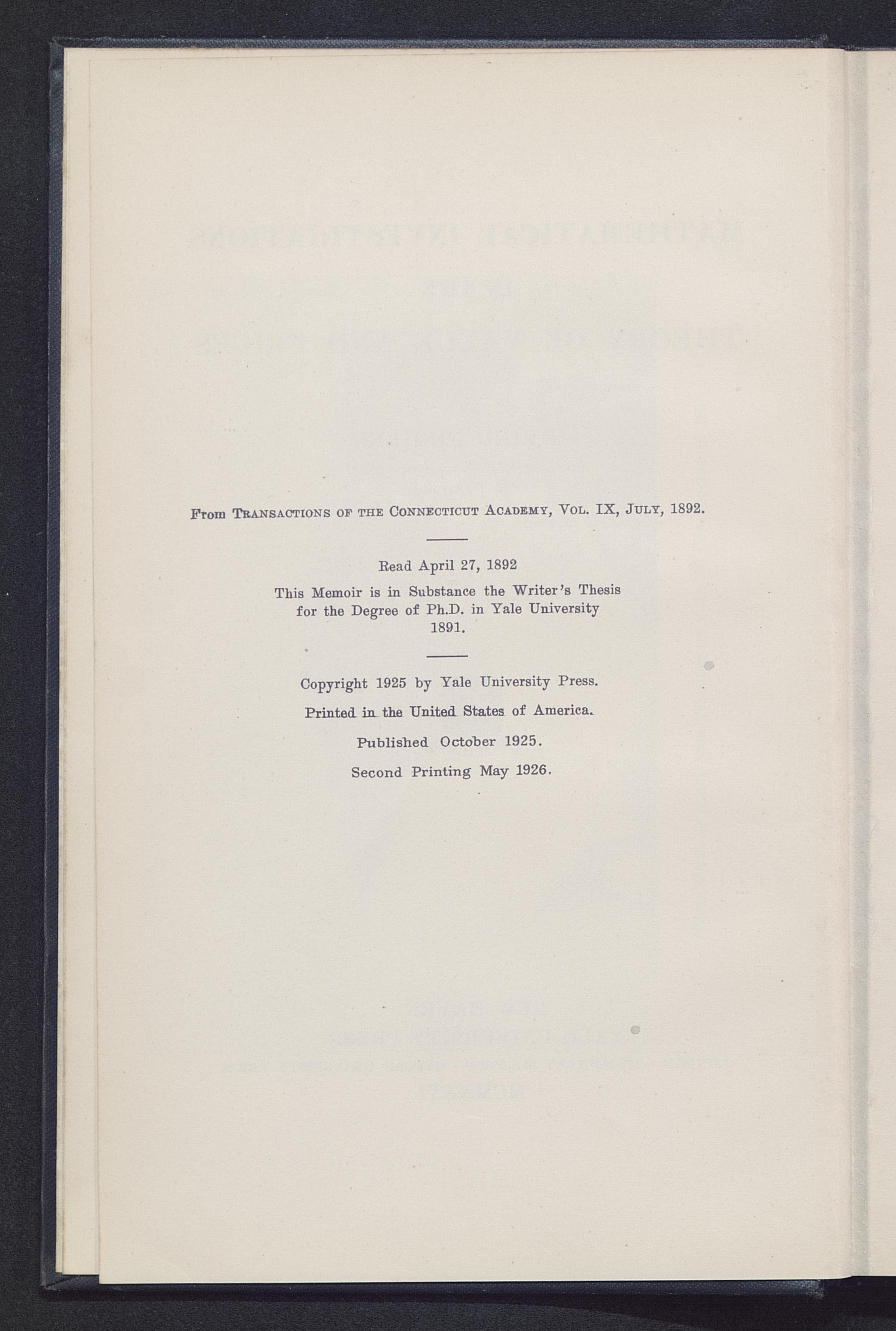 Mathematical investigations in the theory of value and prices / by Irving Fisher