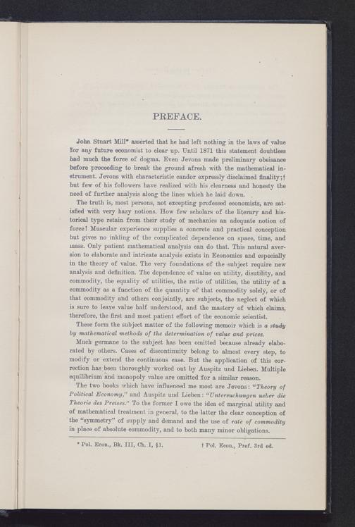 Part I. Utility of each commodity assumed to be dependent only on the quantity of that commodity