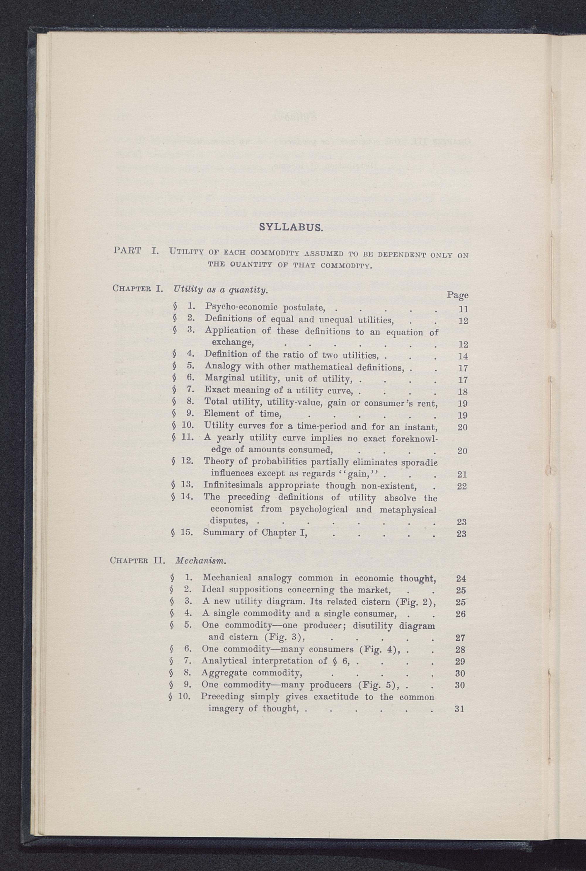 Part I. Utility of each commodity assumed to be dependent only on the quantity of that commodity
