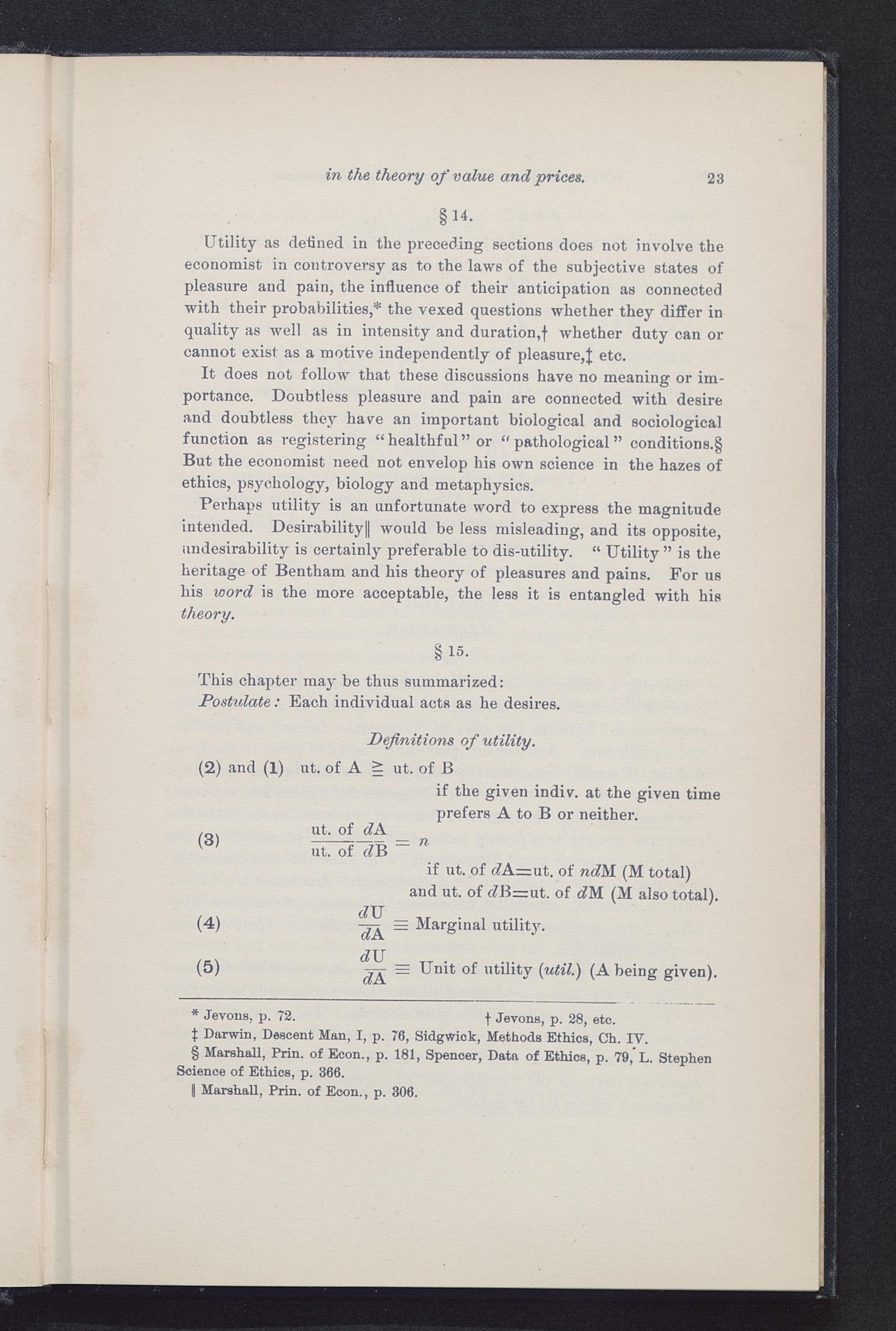 Part II. Utility of one commodity a function of the quantities of all commodities
