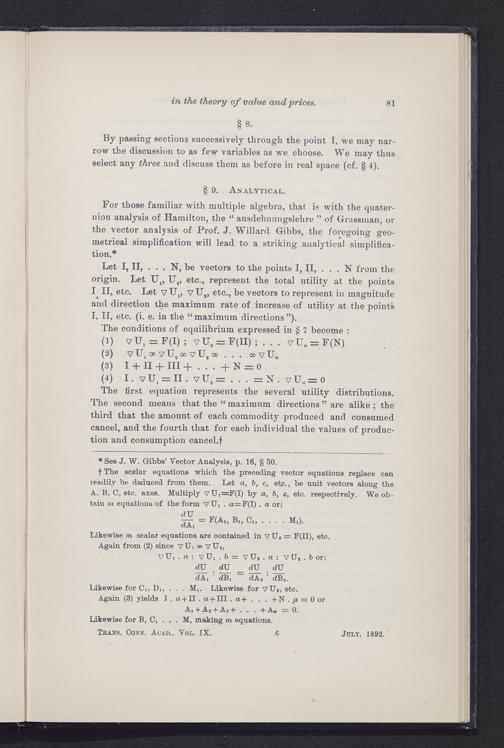 Part II. Utility of one commodity a function of the quantities of all commodities