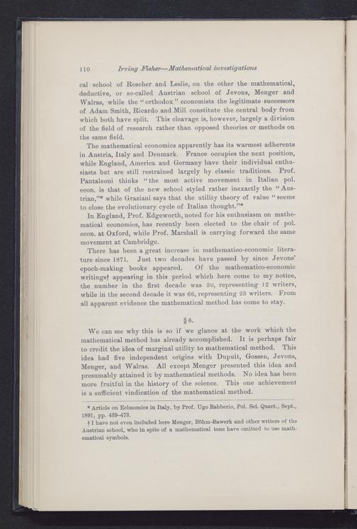 Mathematical investigations in the theory of value and prices / by Irving Fisher