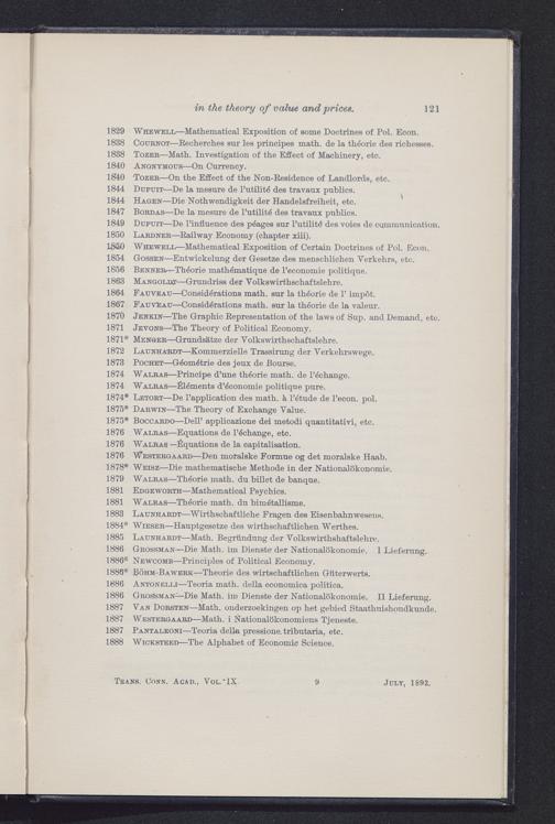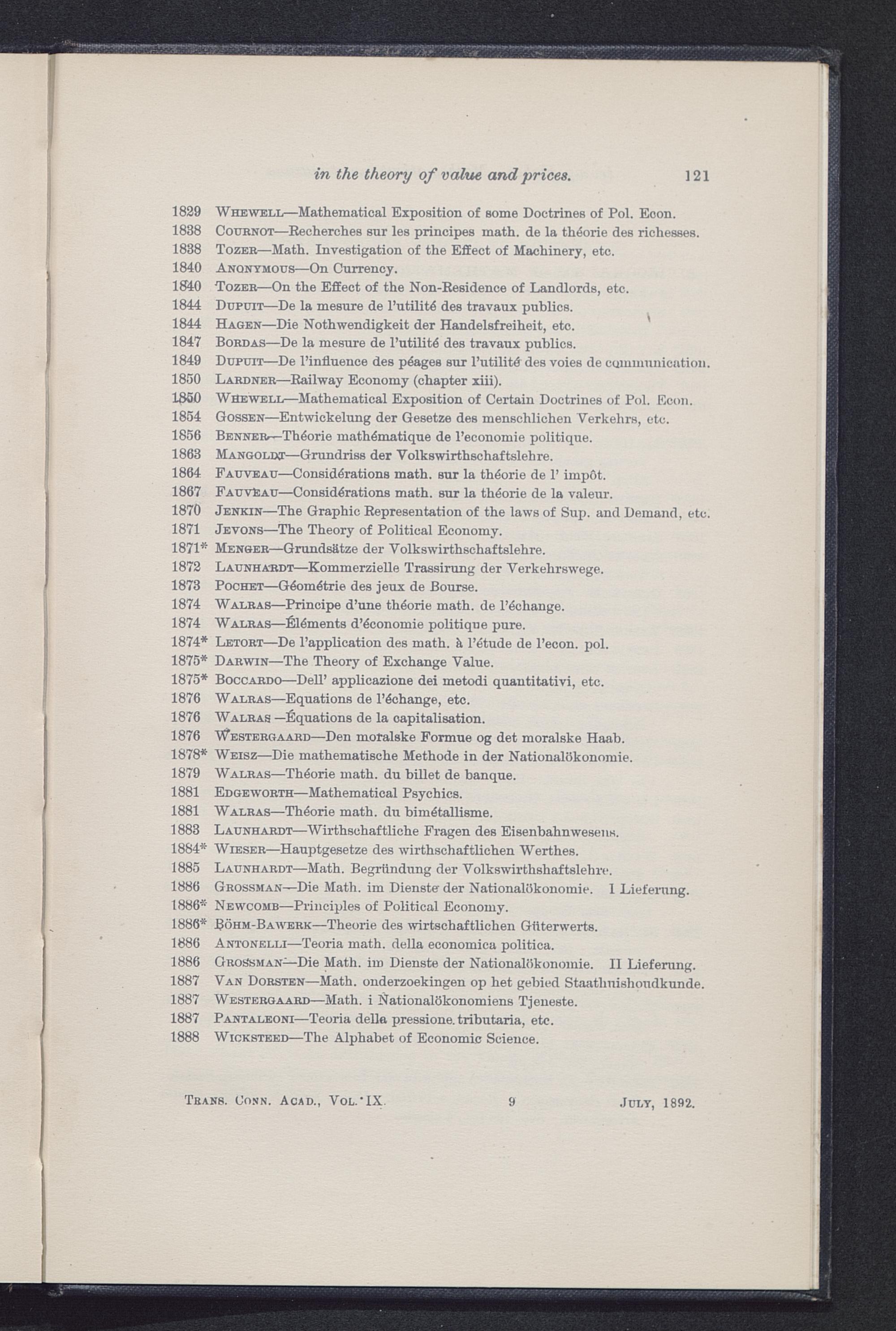 Mathematical investigations in the theory of value and prices / by Irving Fisher