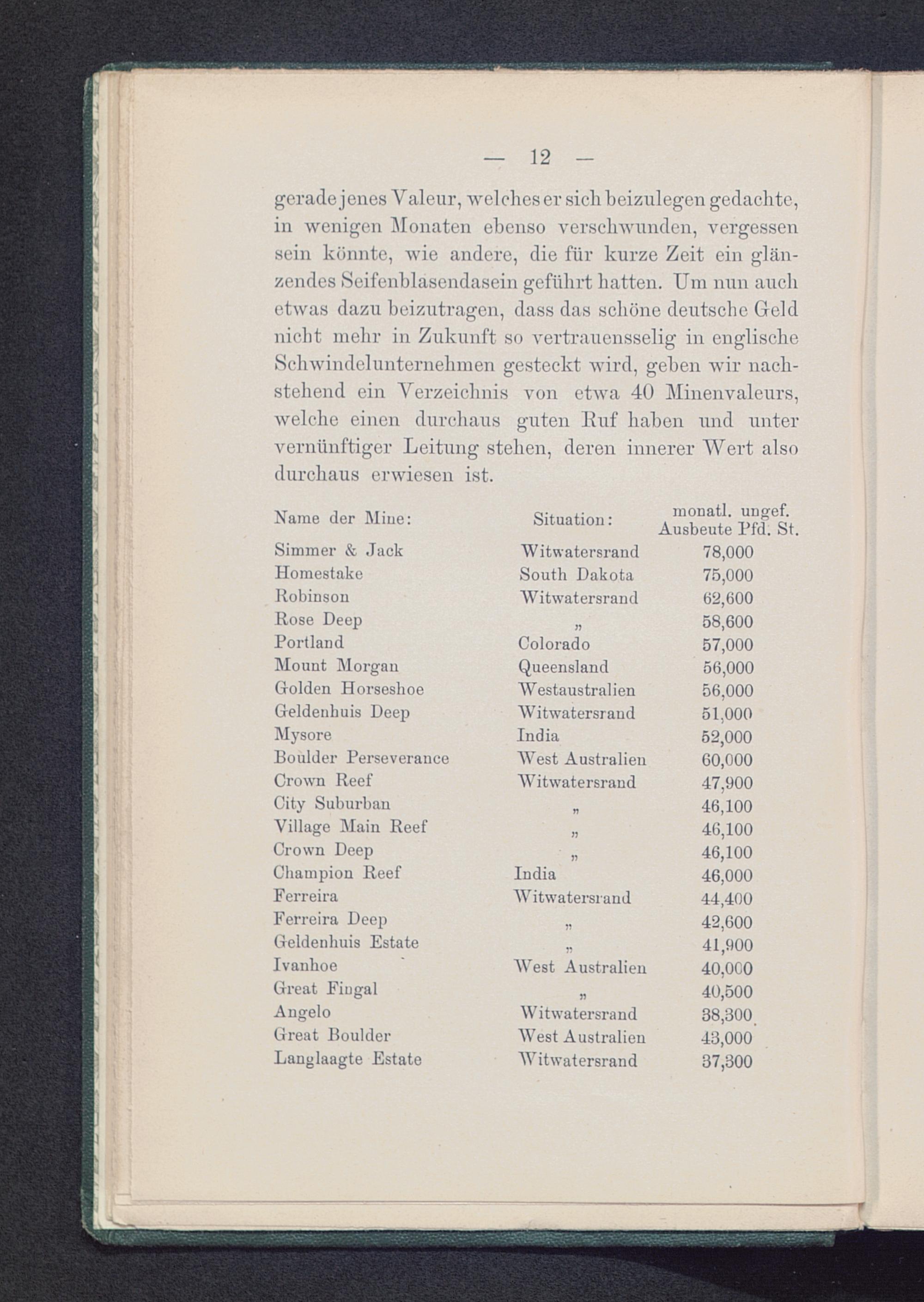 Kurs- und Dividenden-Einzelheiten von Transvaal-Goldminen