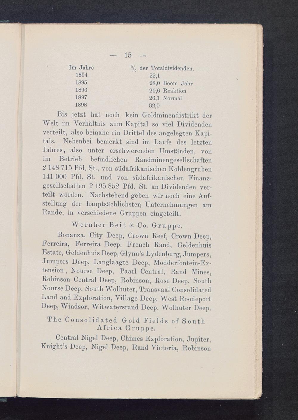 Kurs- und Dividenden-Einzelheiten von Transvaal-Goldminen