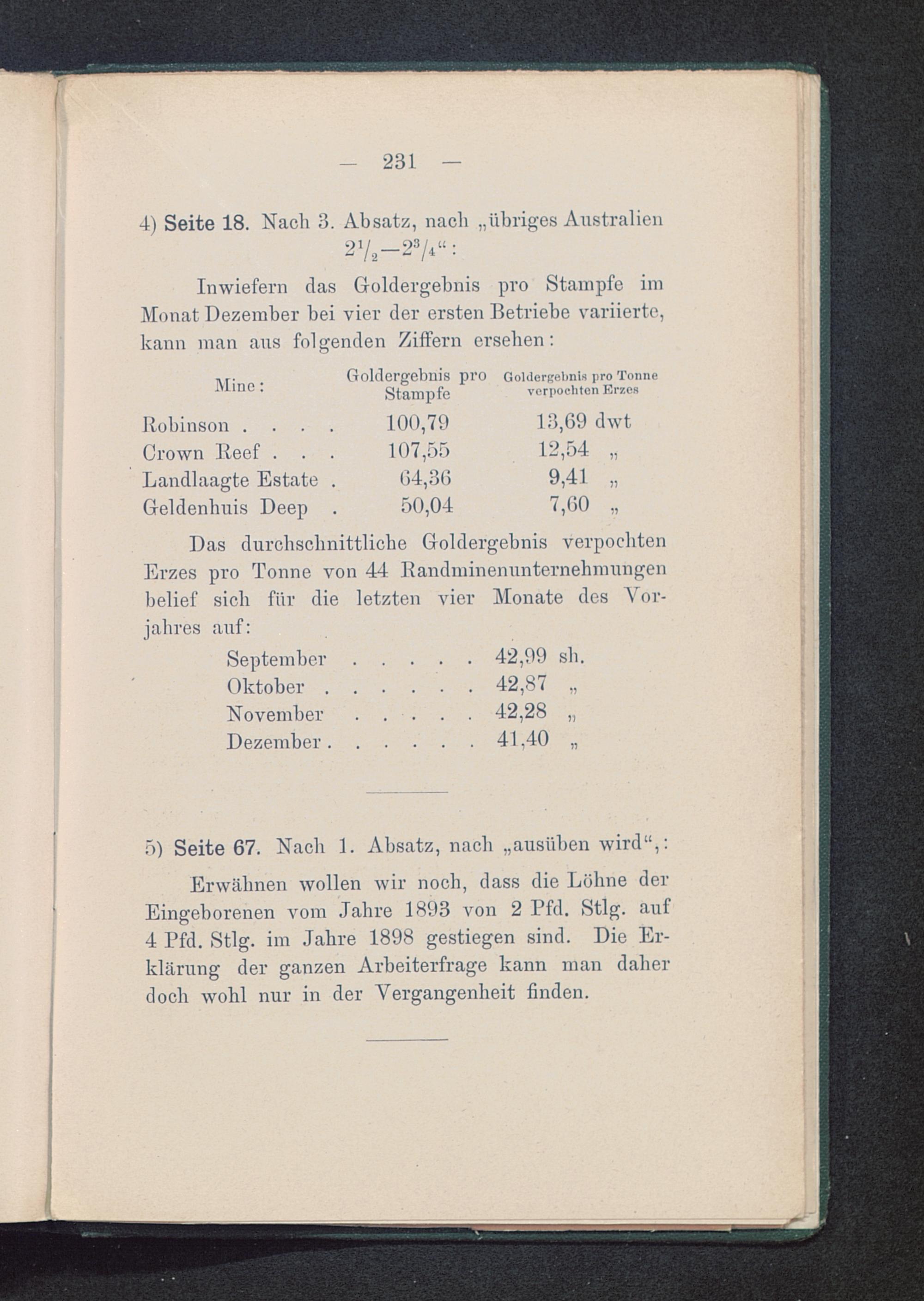 Kurs- und Dividenden-Einzelheiten von Transvaal-Goldminen