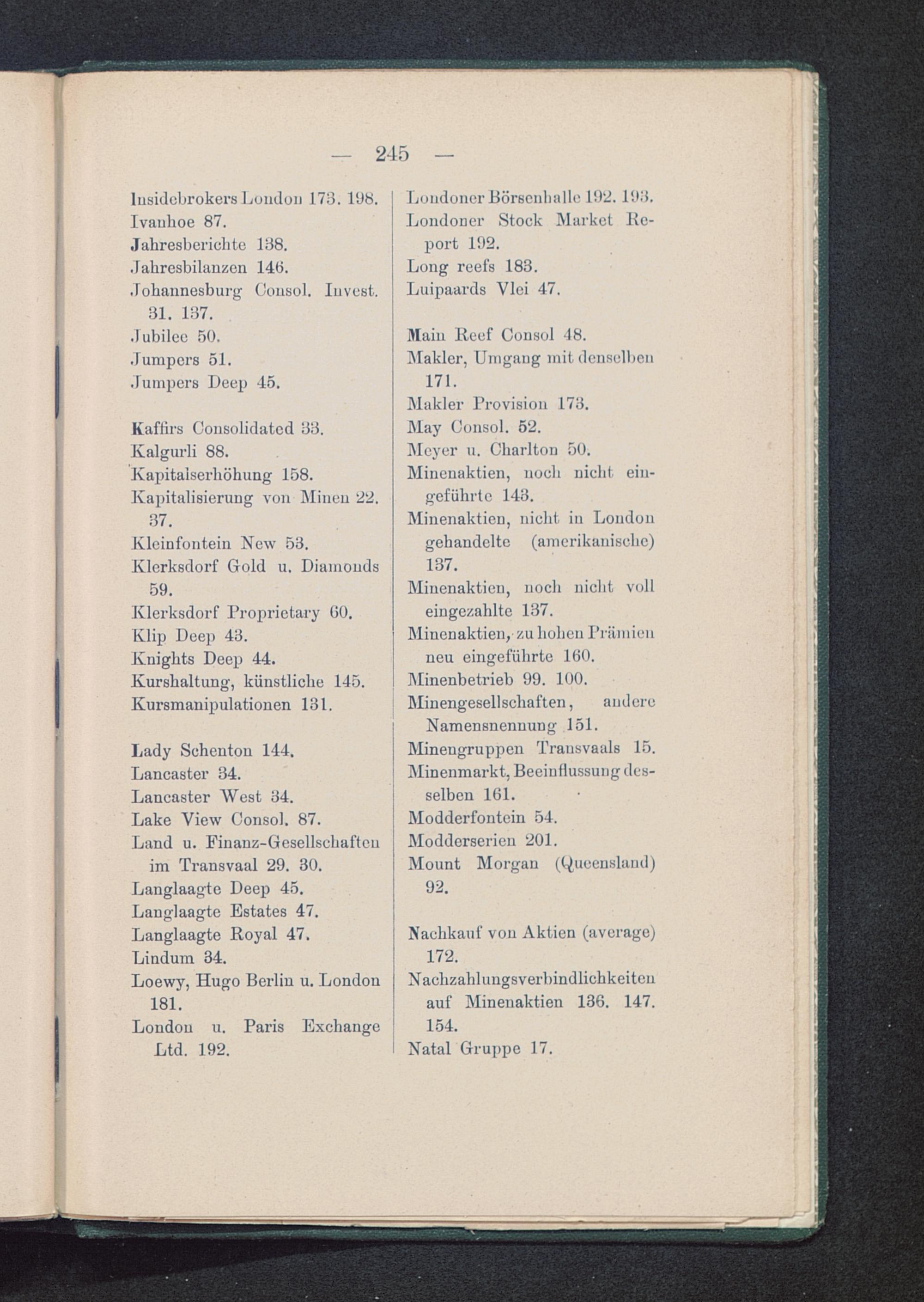 Kurs- und Dividenden-Einzelheiten von Transvaal-Goldminen
