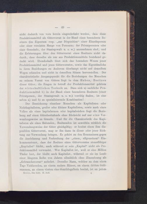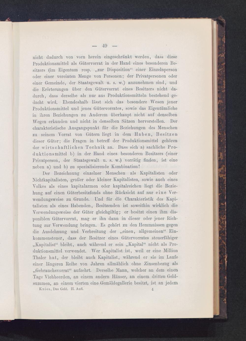 Das Geld : Darlegung der Grundlehren von dem Gelde, insbesondere der wirtschaftlichen und der rechtsgiltigen Functionen des Geldes, mit einer Erörterung über das Kapital und die Übertragung der Nutzungen / von Karl Knies