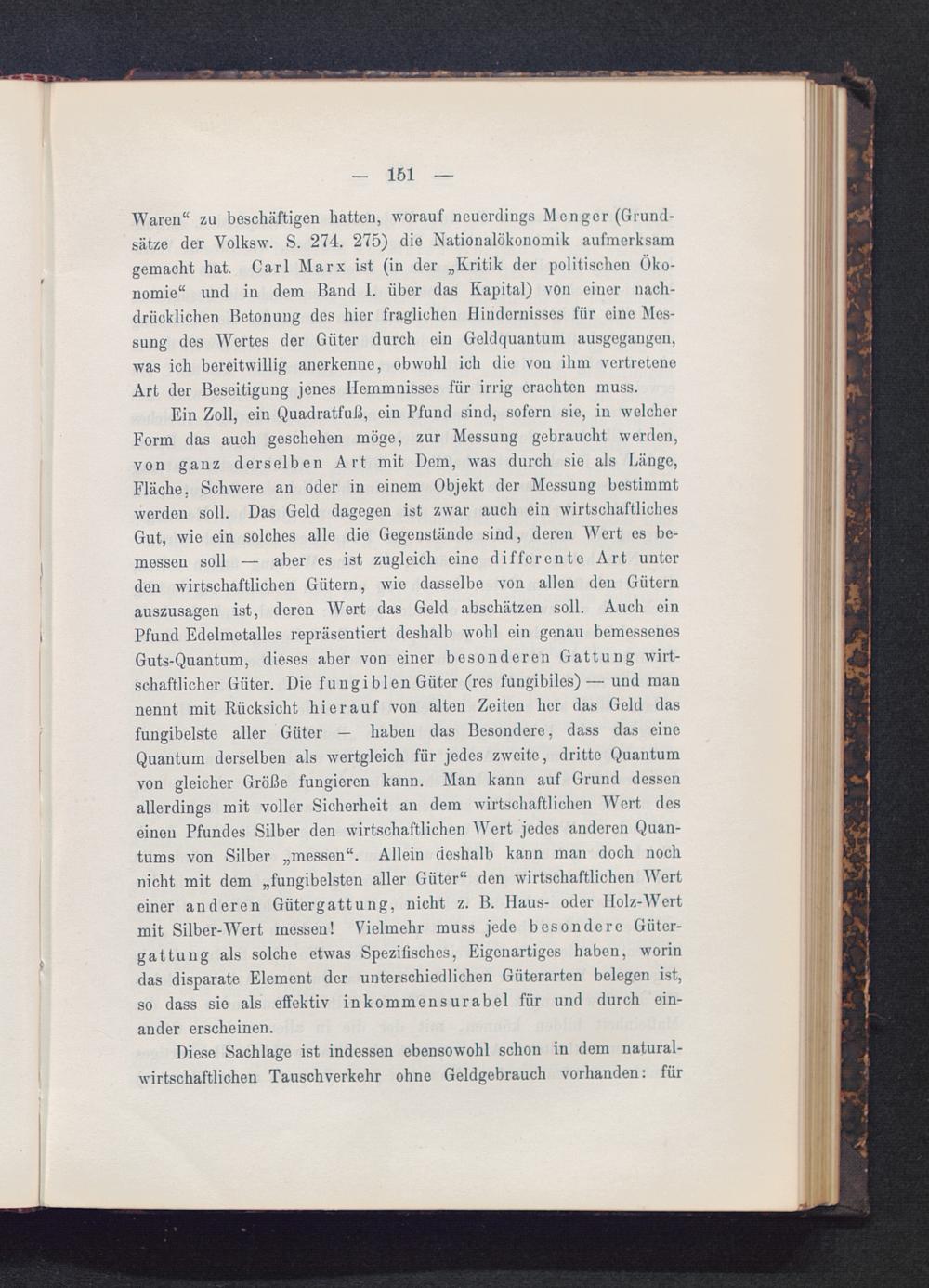 Das Geld : Darlegung der Grundlehren von dem Gelde, insbesondere der wirtschaftlichen und der rechtsgiltigen Functionen des Geldes, mit einer Erörterung über das Kapital und die Übertragung der Nutzungen / von Karl Knies