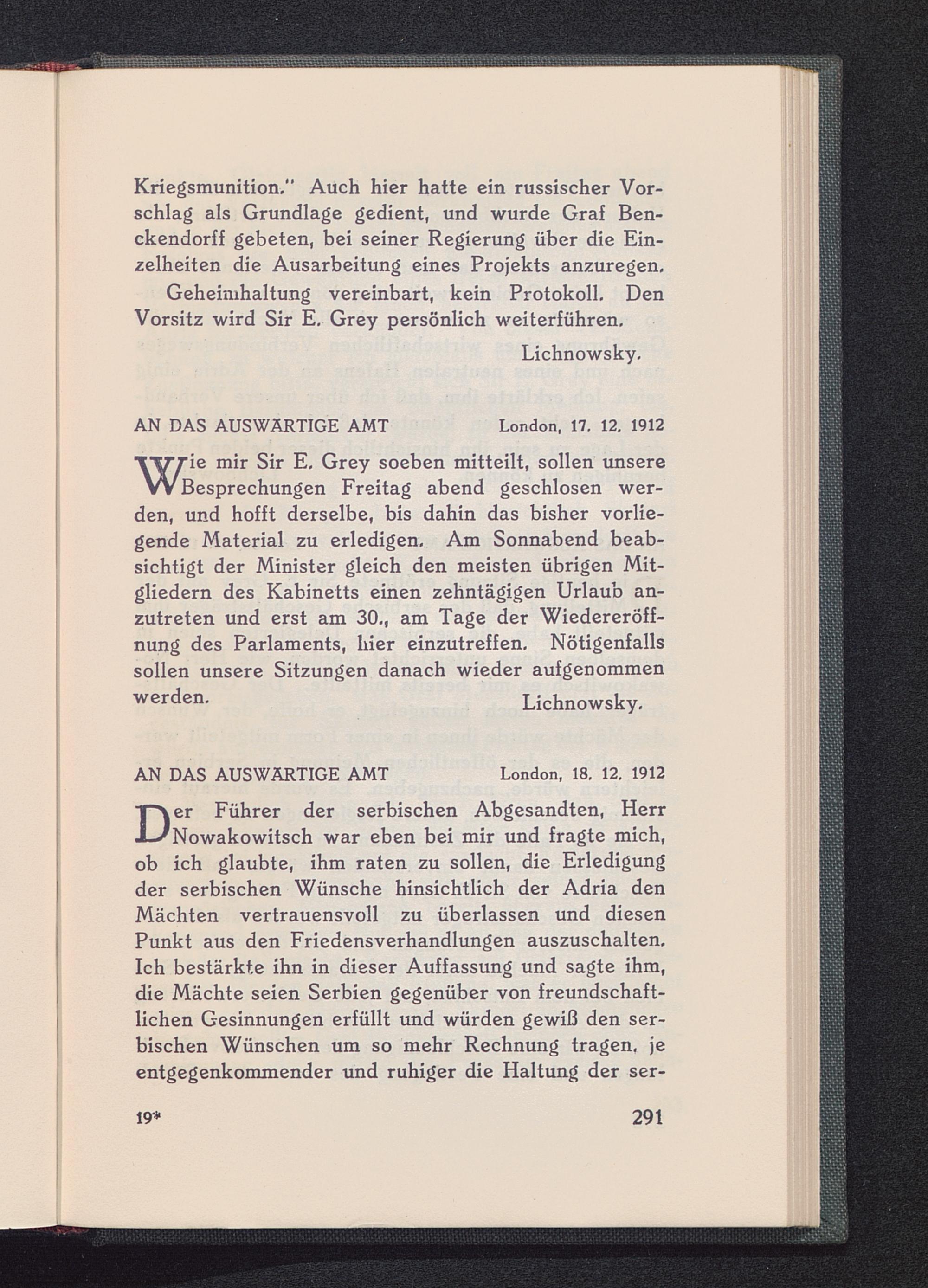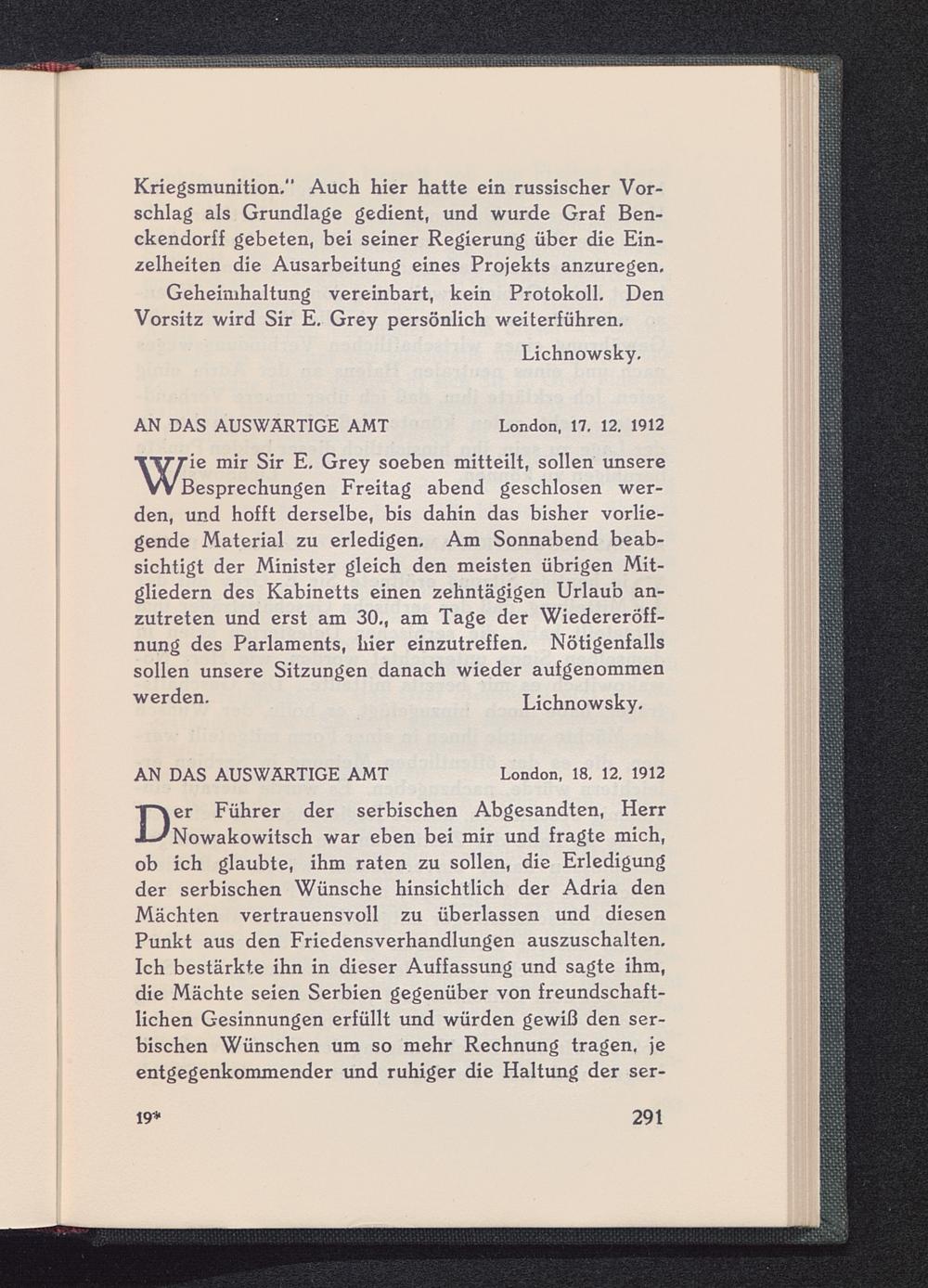 V. An Herrn Theodor Wolff, Chefredakteur des Berliner Tageblattes