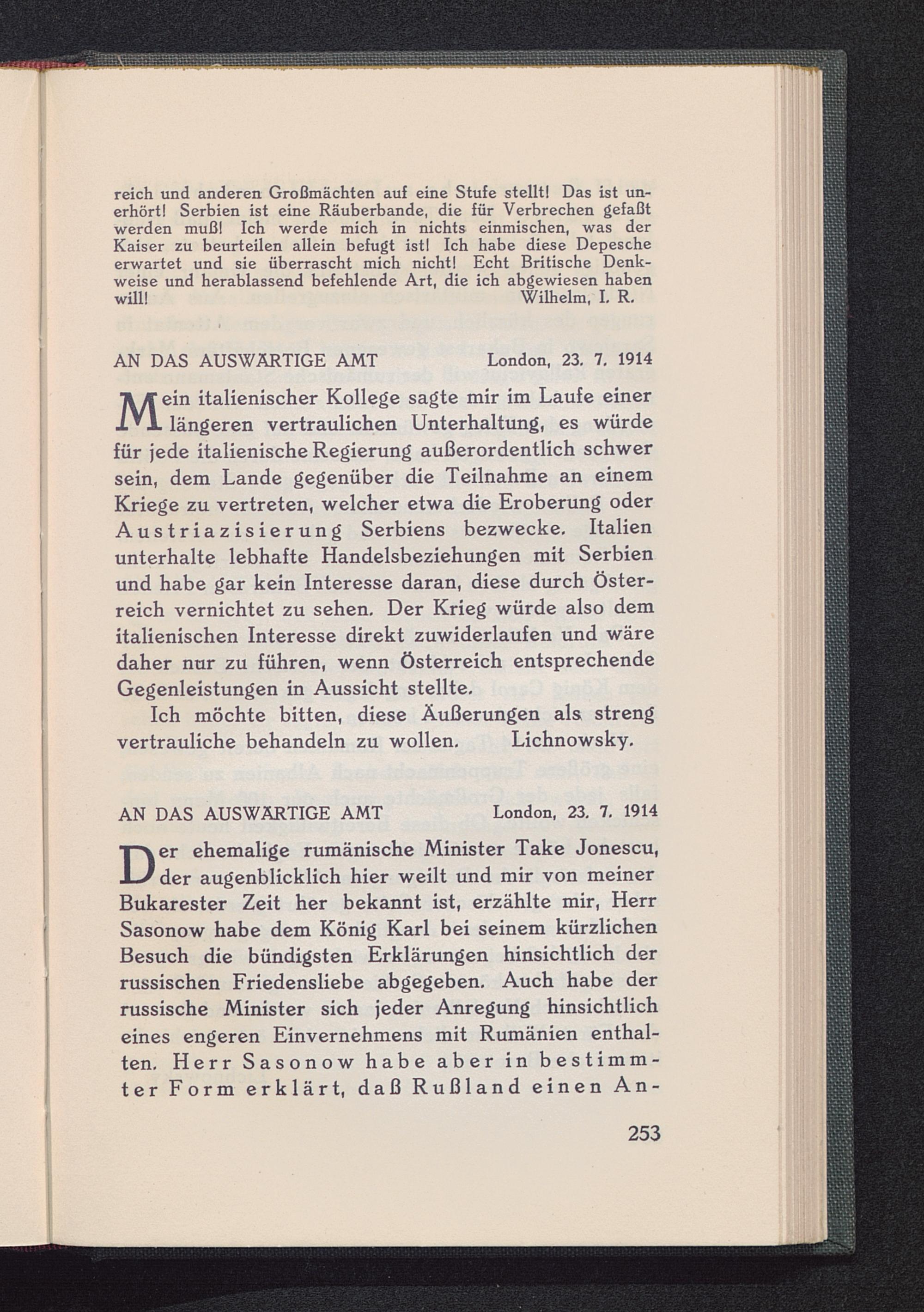 Zum Ultimatum. Aufzeichnungen vom 18. Juni 1919