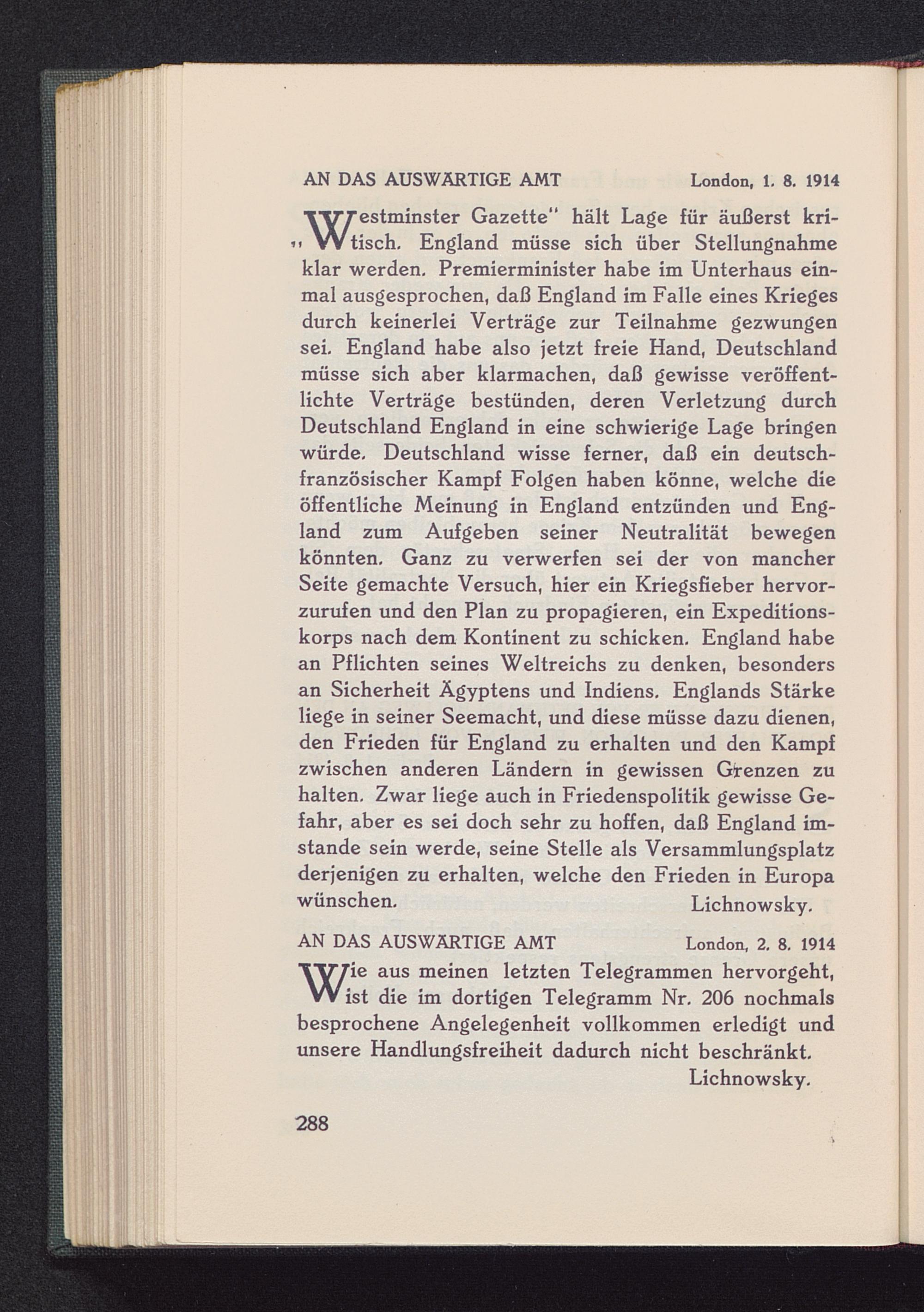 Zum Ultimatum. Aufzeichnungen vom 18. Juni 1919
