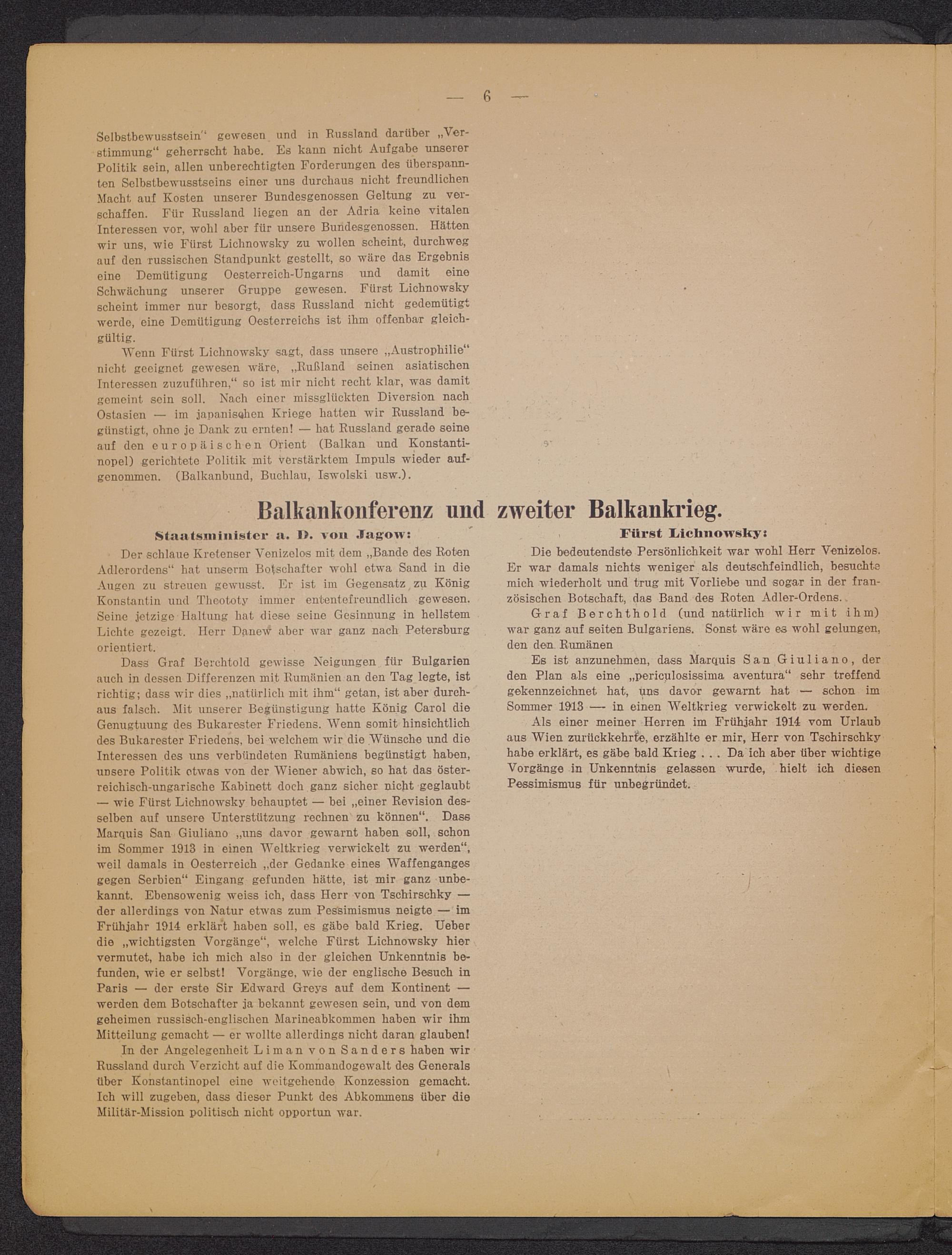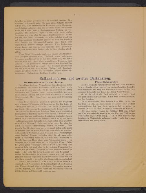 Die Denkschrift Lichnowskys vor dem Hauptausschuß