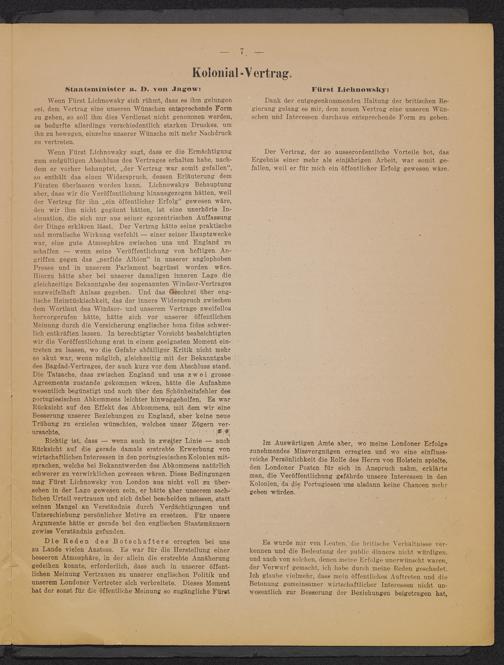 Die Denkschrift Lichnowskys vor dem Hauptausschuß
