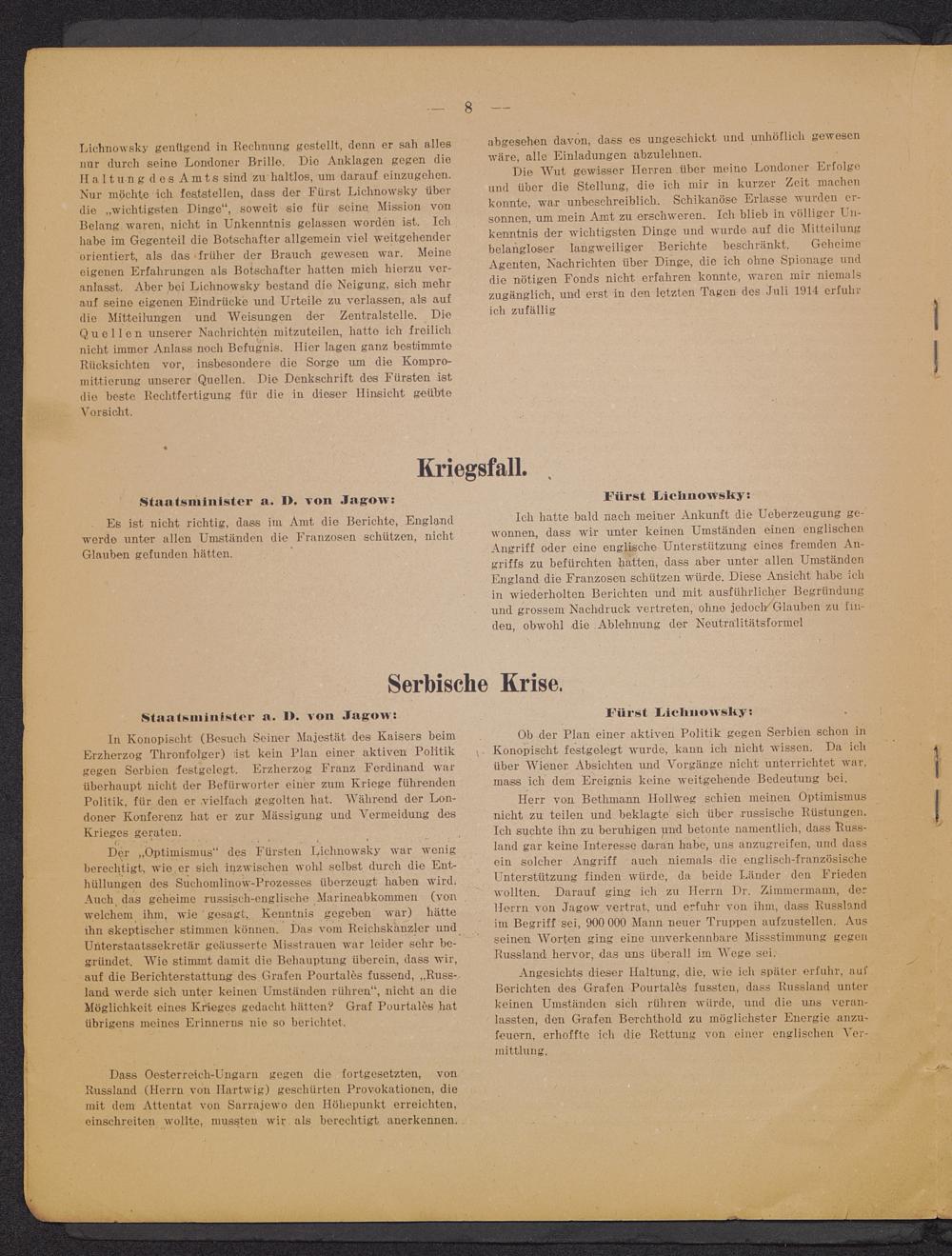 Der Irrtum Lichnowskys / [Lichnowsky ; von Jagow]